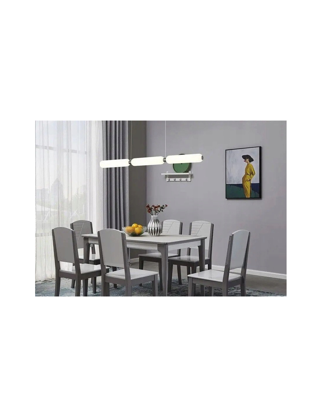 Lampa wyróżnia się trzema zintegrowanymi źródłami światła LED, które emitują jasne, neutralne białe światło. Dzięki temu zapewnia odpowiednie oświetlenie zarówno w jadalni, salonie, jak i kuchni. Klosze lampy wykonane ze szkła dodają lekkości i elegancji, a ich obłe kształty podkreślają nowoczesny charakter produktu.