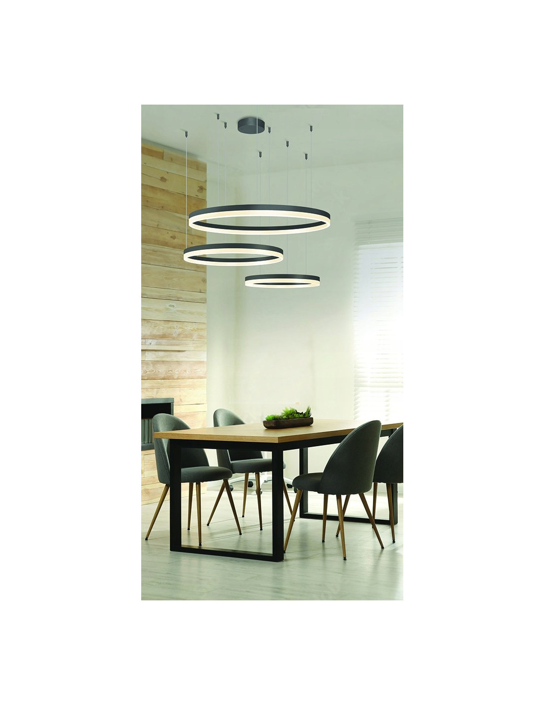 Podsumowując, lampa wisząca HALO PENDANT 120+100+80 CCT to nie tylko praktyczne oświetlenie, ale również elegancki element dekoracyjny. Idealnie nadaje się do różnych pomieszczeń, takich jak: biuro, kuchnia, korytarz oraz pokój dziecięcy. Wybierz tę lampę, aby przemienić swoje wnętrze w przestrzeń pełną stylu i harmonii.
