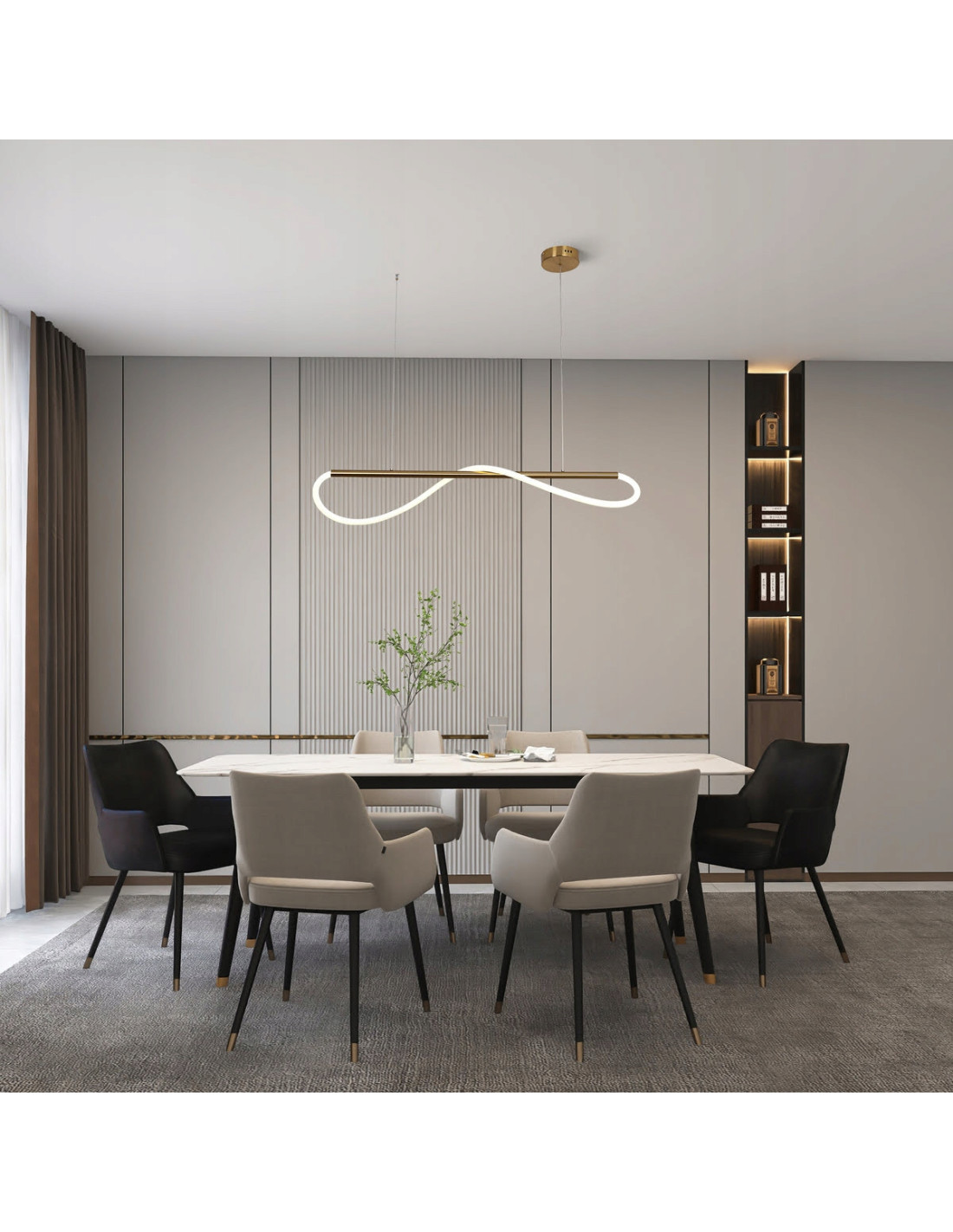 Lampa wisząca Meleca S w złotym kolorze to wyjątkowy element, który wzbogaci każde wnętrze. Dzięki swojemu nowoczesnemu i eleganckiemu designowi, idealnie wpisuje się w aktualne trendy luksusowego stylu. Jej unikalny charakter to rezultat precyzyjnego połączenia metalowych elementów oraz innowacyjnej silikonowej tuby, która otacza zintegrowane światło LED. To nie tylko oświetlenie – to również dekoracyjny akcent, który podkreśli stylowe aranżacje.