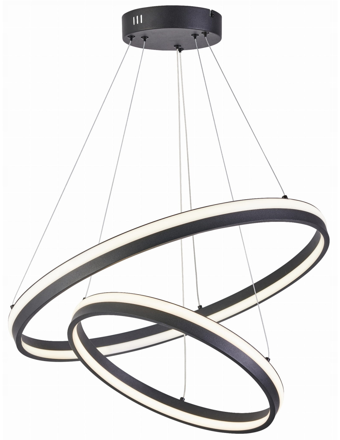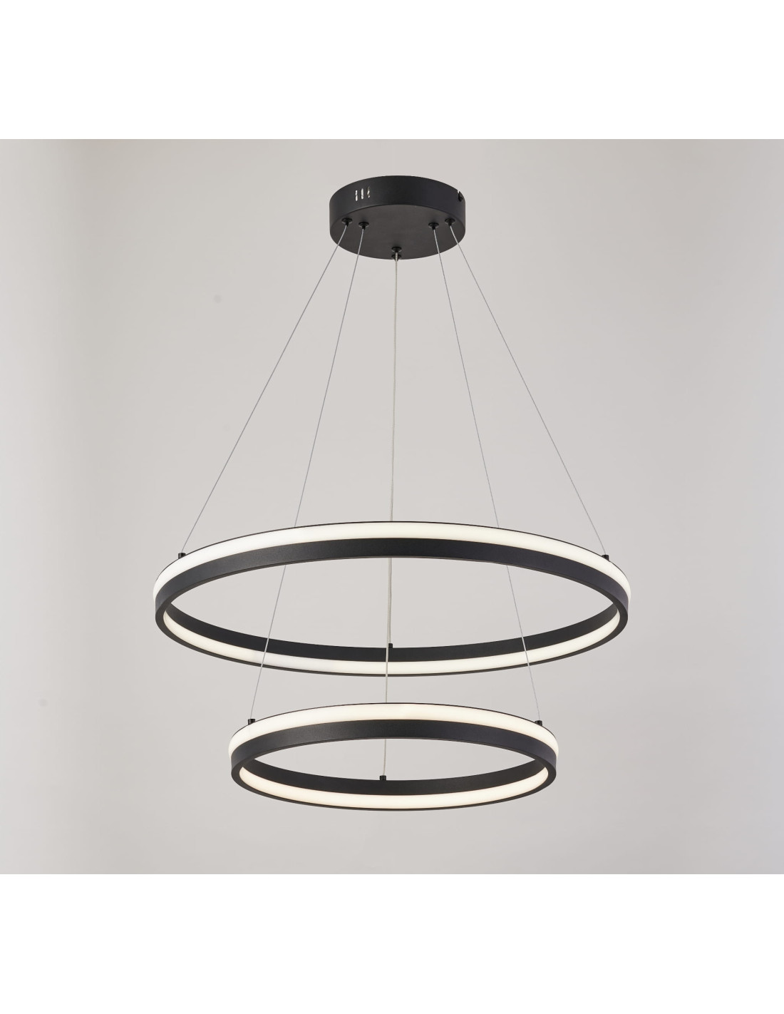 Proxima to nowoczesna lampa wisząca LED, która łączy minimalistyczny design z doskonałą funkcjonalnością. Wykonana w eleganckim matowym czarnym kolorze, ta lampa stanowi idealne dopełnienie zarówno współczesnych, jak i stylowych wnętrz. Jej unikalny kształt w postaci dwóch okrągłych ringów nadaje przestrzeni nowoczesnego charakteru, doskonale wpisując się w różne style aranżacji.