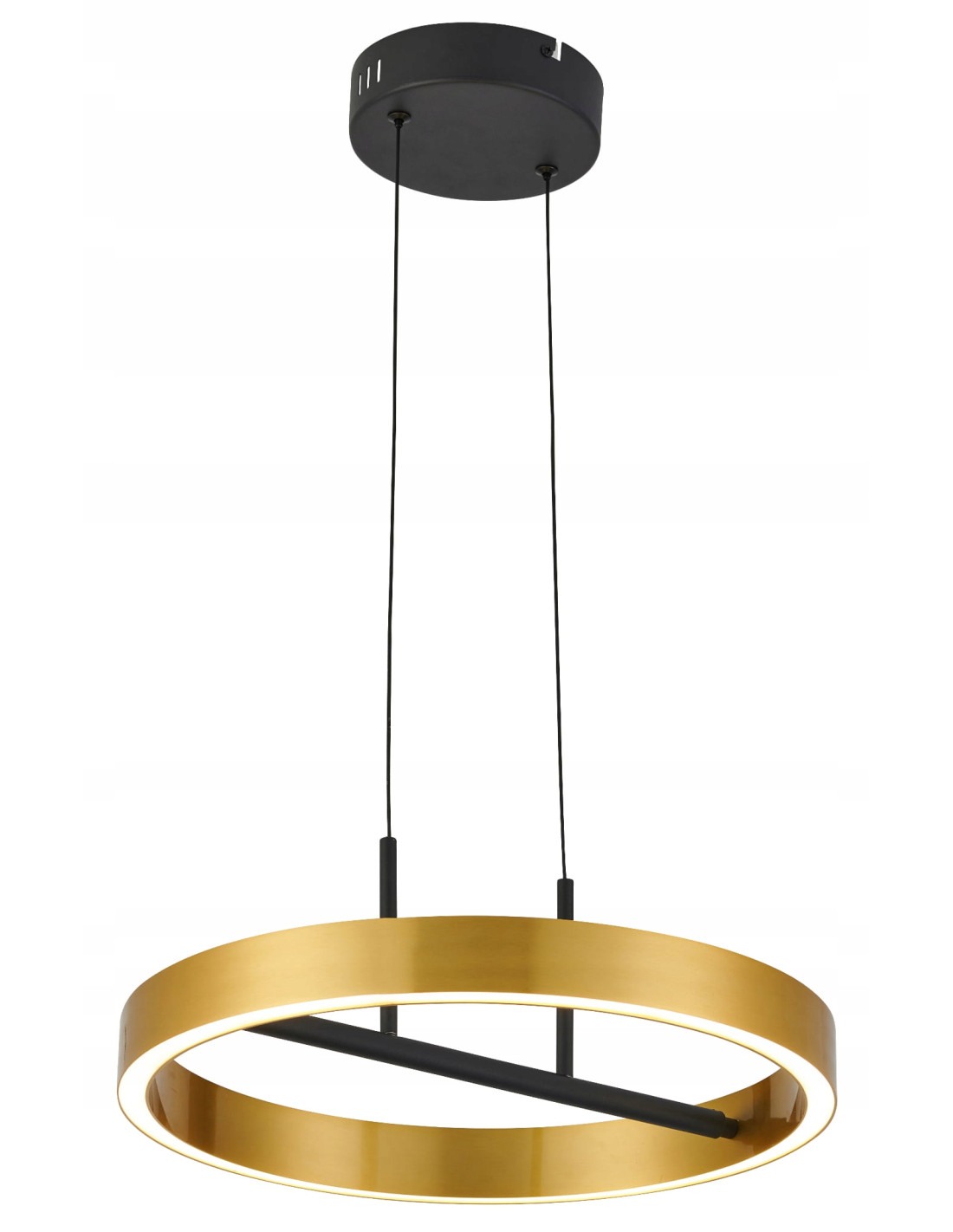 Oferujemy złotą lampę wiszącą LED Ring, która stanowi niezwykle elegancki akcent do każdego wnętrza. Ta nowoczesna lampa z pewnością przyciągnie wzrok i doda charakteru przestrzeni, w której się znajduje. Dzięki swojemu czarnemu wykończeniu oraz minimalistycznemu designowi, lampa doskonale wpisuje się w trendy współczesnego wystroju.
