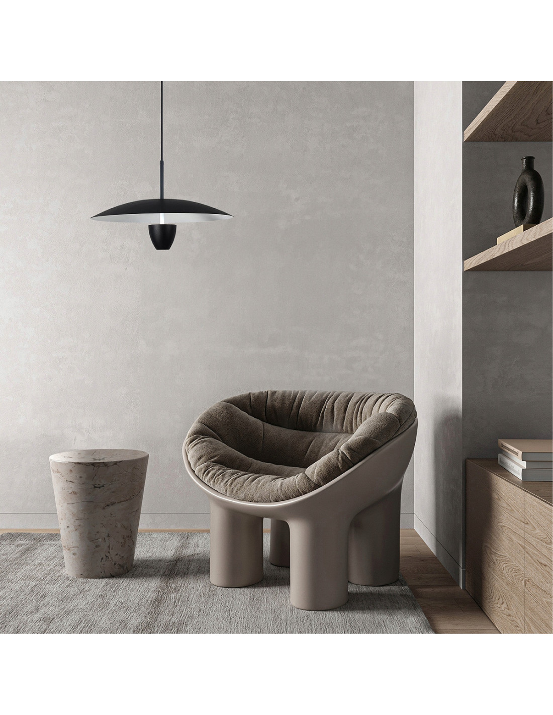 Lampa wisząca Ufo S w kolorze czarnym to idealne rozwiązanie dla osób, które pragną wzbogacić swoje wnętrza o nowoczesne oświetlenie. Jej minimalistyczny design oraz funkcjonalność sprawiają, że świetnie komponuje się zarówno w jadalni, jak i w innych pomieszczeniach mieszkalnych. Dzięki jej uniwersalnemu wyglądowi, spójnie wpasuje się w różnorodne aranżacje wnętrz, dodając im charakteru i stylu.