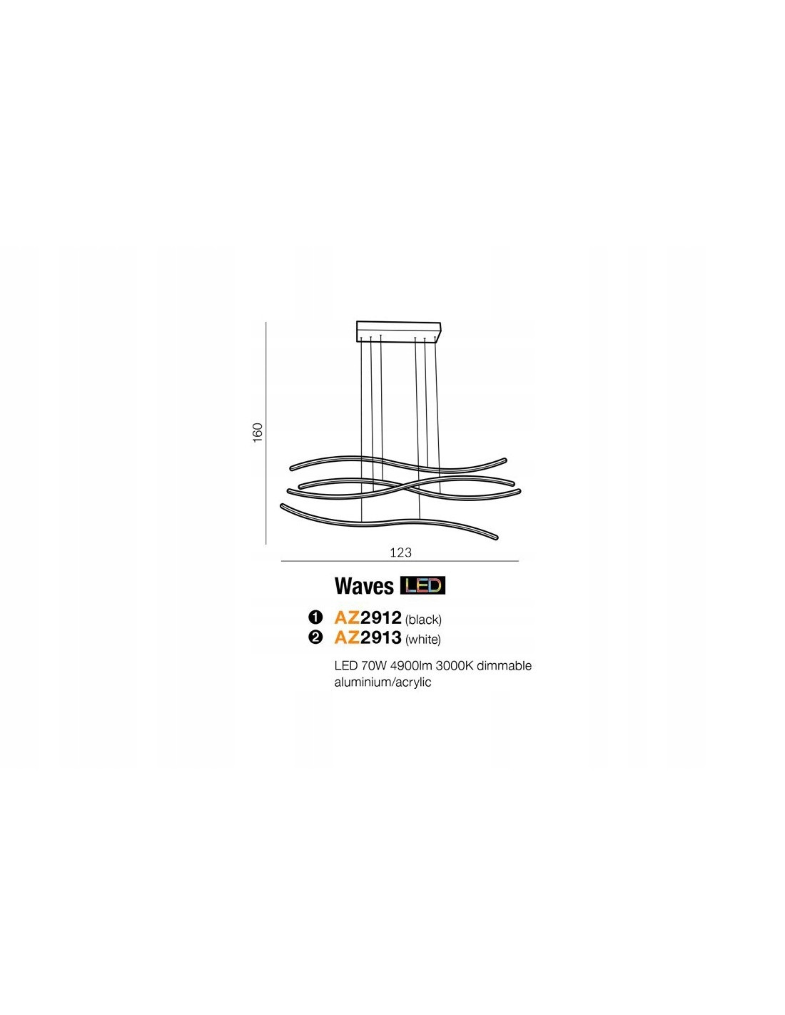 Wymiary lampy wynoszą 160 cm wysokości oraz 123 cm szerokości, co sprawia, że staje się centralnym elementem każdego pomieszczenia. Jej czarna kolorystyka dodaje elegancji i sprawia, że lampa jest idealnym wyborem dla osób poszukujących nowoczesnych, ale jednocześnie uniwersalnych rozwiązań oświetleniowych. Lampa wisząca WAVES LED to świetny wybór dla wszystkich, którzy pragną wprowadzić do swojego wnętrza odrobinę stylu i nowoczesności.