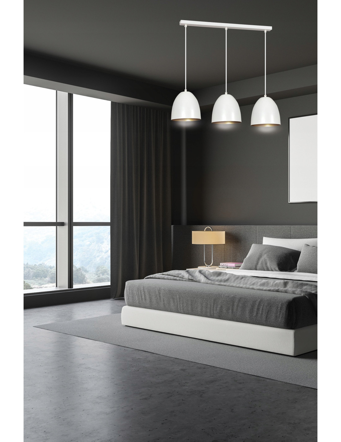 Kolorystyka lampy, w połączeniu z użytym w niej metalem, podkreśla jej nowoczesny charakter. Biały i złoty kolor sprawia, że lampa wpasuje się zarówno w klasyczne, jak i nowoczesne wnętrza. To idealny sposób na dodanie elegancji i wyjątkowego smaku każdemu pomieszczeniu.