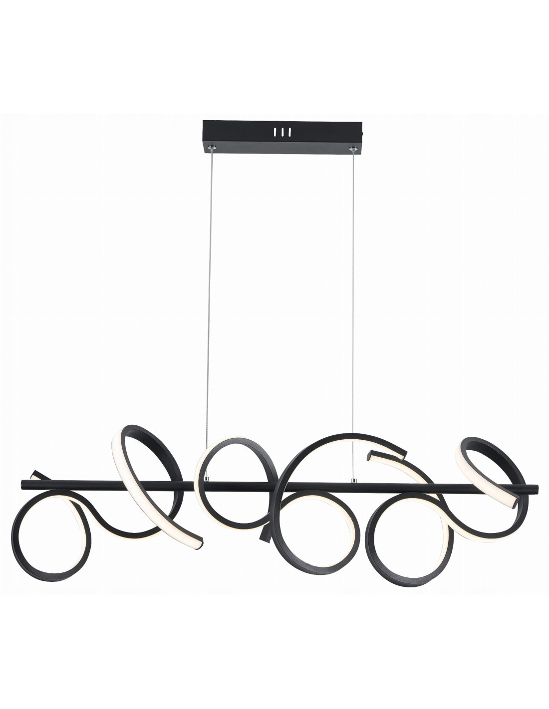 Lampa wisząca Lozanna to doskonałe połączenie nowoczesnego wzornictwa i funkcjonalności. Jej niezwykły wygląd przyciąga wzrok i dodaje charakteru każdemu wnętrzu. Lampa składa się z zakrzywionych oraz splątanych elementów, które tworzą dynamiczny, abstrakcyjny wzór w formie pętli i spirali, idealnie wpisując się w koncepcję nowoczesnych aranżacji. Czarne, metalowe akcenty otaczają źródła światła, a białe, półprzezroczyste osłony nadają jej subtelności i lekkości, co pozwala na harmonijne wkomponowanie jej w różnorodne style wnętrz.