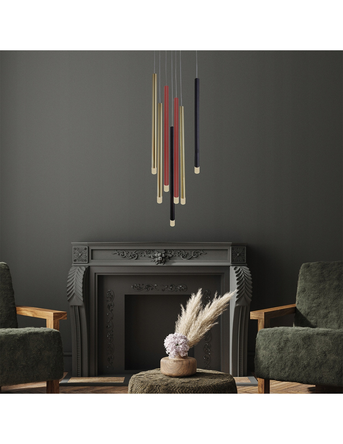 Każde z ramion lampy Lungo jest zawieszone na różnych wysokościach, co dodaje jej przestrzennego efektu i podkreśla unikalność całej konstrukcji. Taka różnorodność w wysokości i kolorystyce sprawia, że lampa idealnie komponuje się w każdym pomieszczeniu, od salonu po jadalnię. Dzięki temu stanie się centralnym punktem aranżacji, przyciągając wzrok gości i nadając wnętrzu stylowy wygląd.