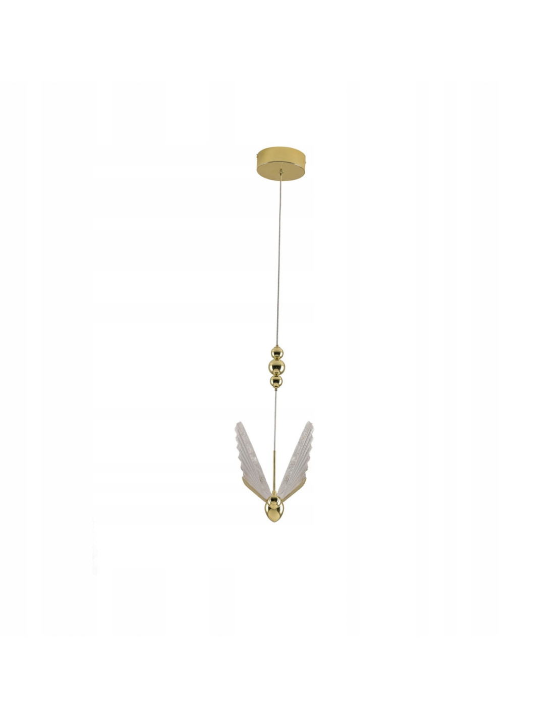 Lampa wisząca Mariposa to niezwykłe oświetlenie, które łączy w sobie funkcjonalność z unikalnym designem. Jej forma przypomina delikatnego motyla z kryształowymi skrzydłami, co sprawia, że stanowi ona wyjątkowy element dekoracyjny wnętrza. Bez względu na to, w jakim pomieszczeniu zagości, doda mu bardzo eleganckiego i stylowego charakteru.