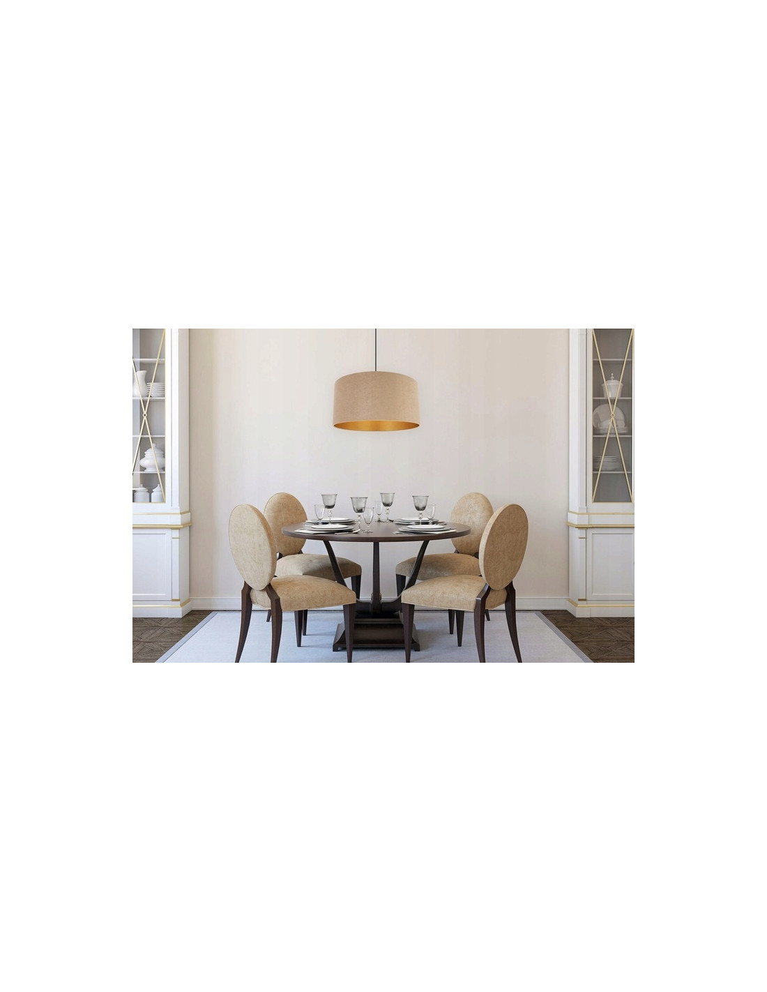 Odkryj stylową lampę z mosiężnymi elementami, która doda elegancji Twojemu wnętrzu. Model MEDIOLAN to wyjątkowy wybór dla osób poszukujących nowoczesnych rozwiązań oświetleniowych. Ta wisząca lampa w połączeniu z czarną konstrukcją i beżowym abażurem oferuje nie tylko przyjemne światło, ale również romantyczny wygląd, który ożywi każdą przestrzeń.