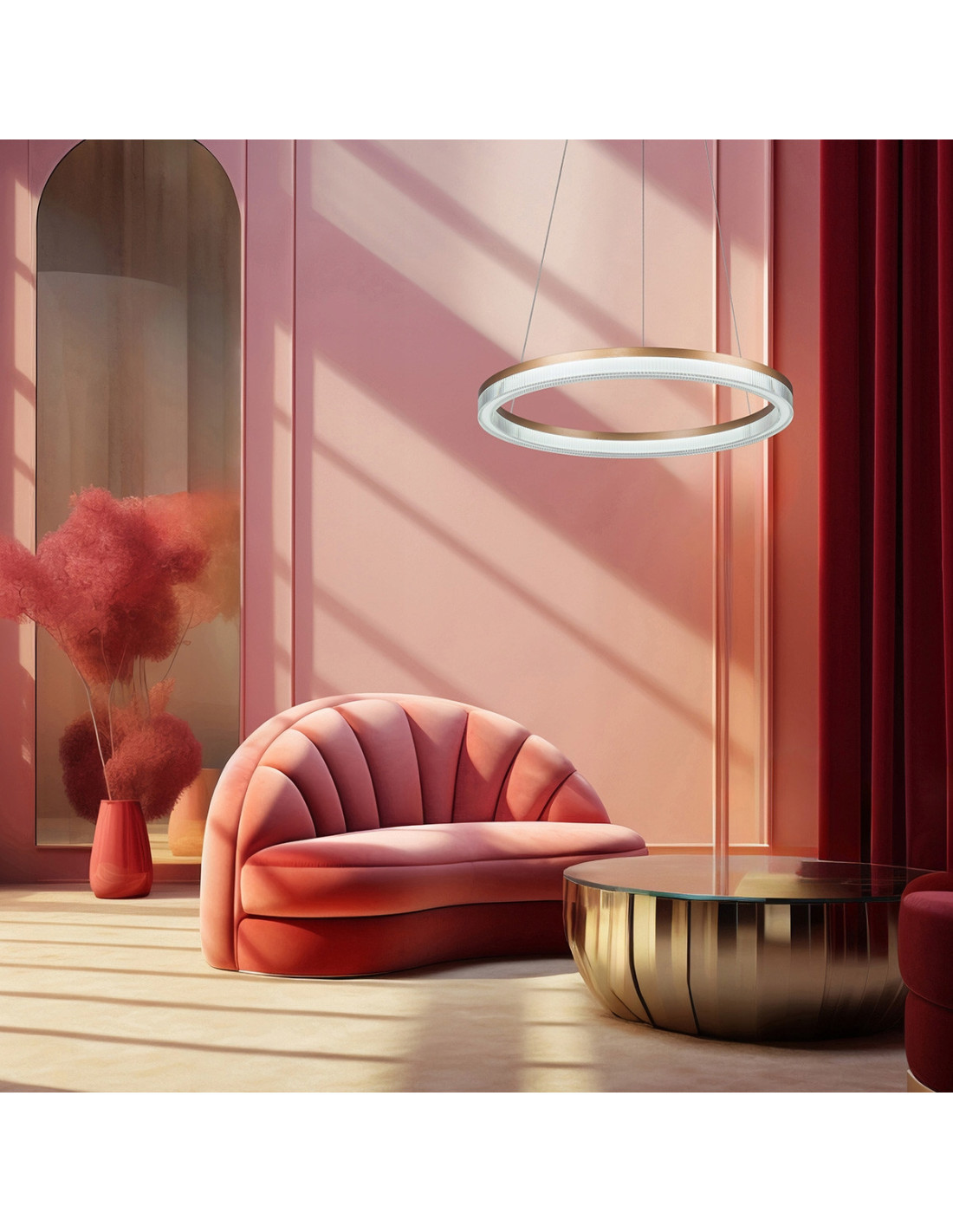 Lampa wisząca Midway Cristal to elegancki element oświetleniowy, który doda blasku i wymiaru do każdego wnętrza. Wykonana z metalu w kolorze złota oraz transparentnego akrylu, łączy w sobie nowoczesny design z efektownym wykończeniem, które przyciąga wzrok. Jej okrągły kształt i stonowane kolory sprawiają, że doskonale wpasuje się w estetykę zarówno nowoczesnych, jak i klasycznych pomieszczeń.