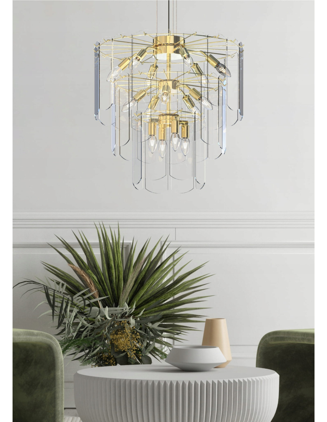 Odkryj luksusowy urok lampy wiszącej NIRA, która sprawi, że Twoje wnętrze zyska niepowtarzalny charakter. Ta elegancka lampa została stworzona z myślą o nowoczesnych przestrzeniach, wprowadzając do nich odrobinę glamour. Jej wyrafinowana estetyka, w połączeniu z złotym metalicznym wykończeniem, sprawia, że stanowi doskonałe uzupełnienie dla stylowych aranżacji.