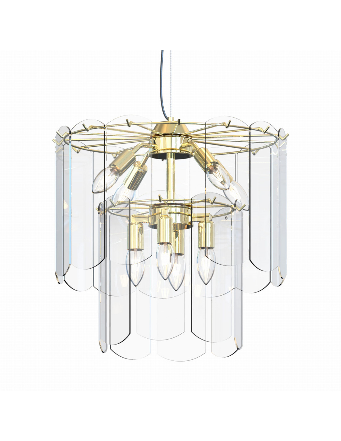 Przezroczyste szklane klosze otaczające żarówki subtelnie tłumią blask światła, co sprawia, że lampa emituje miłe dla oka oświetlenie. Taki efekt wyjątkowo dobrze sprawdza się w miejscach przeznaczonych do relaksu, takich jak salony czy sypialnie. Dodatkowo, transparentne elementy lampy podkreślają jej nowoczesny design i sprawiają, że jest ona idealnym wyborem dla osób ceniących sobie estetykę i funkcjonalność.