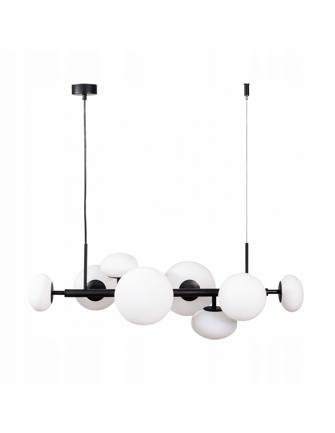 Lampa wisząca OMI to wyjątkowy element wyposażenia, który z pewnością przyciągnie uwagę każdego gościa. Ten nowoczesny model składa się z aż 8 kloszy o różnych wielkościach, co nadaje mu unikalny charakter. Idealnie nadaje się do zastosowania nad stołem jadalnianym lub w salonie nad sofą, tworząc przytulną atmosferę sprzyjającą spotkaniom towarzyskim oraz rodzinnym.