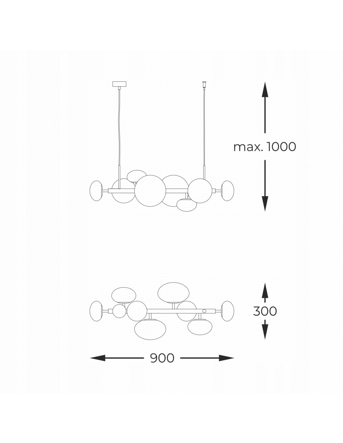 Dzięki zastosowaniu żarówek G9 o maksymalnej mocy 5W, lampa zapewnia równomierne i efektywne oświetlenie pomieszczenia. Każdy klosz w lampie OMI jest zaprojektowany z myślą o efektywności energetycznej, co czyni ją nie tylko dekoracyjnym, ale i praktycznym rozwiązaniem. Wysokość lampy wynosi 100 cm, a szerokość 90 cm, co sprawia, że doskonale wpasuje się w różnorodne aranżacje wnętrz.