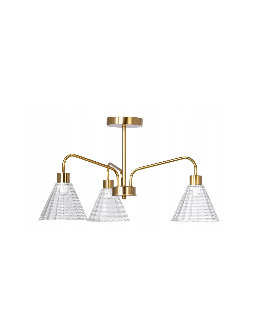 Wymiary lampy wynoszą: wysokość 36 cm oraz szerokość 64 cm, co czyni ją idealnym elementem zarówno do niewielkich, jak i przestronnych wnętrz. Lampa została zaprojektowana z myślą o zastosowaniu trzech żarówek o gwincie E27, co pozwala na dostosowanie natężenia światła do indywidualnych potrzeb. Proszę pamiętać, że źródło światła nie jest dołączone do produktu, co daje możliwość wyboru żarówki odpowiadającej preferencjom klienta.