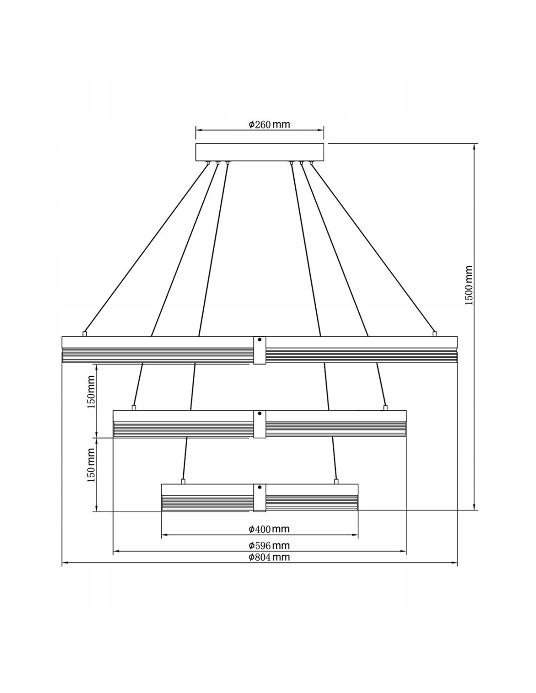 Jednym z kluczowych atutów lampy Plum 3 jest jej wbudowane źródło światła LED o zmiennej barwie CCT. Dzięki opcji regulacji barwy światła (3000, 4000, 6000 K) oraz różnej mocy (40W, 32W, 24W), każda chwila spędzona w jej towarzystwie stanie się jeszcze bardziej komfortowa. Wysokość lampy wynosi 150 cm, a średnice obręczy to kolejno 80 cm, 60 cm i 40 cm, co czyni ją idealnym wyborem do wysokich pomieszczeń.