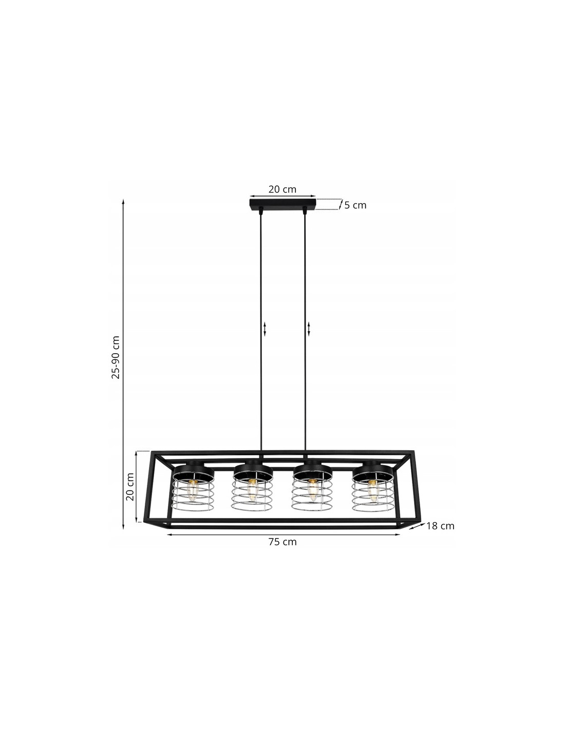 Wybierając lampę RASTI CAGE, można korzystać z czterech punktów świetlnych, co zapewnia odpowiednią ilość światła w każdym pomieszczeniu. Lampa zasilana jest standardowo, a zastosowanie źródeł światła E27 (do 60W każde) zapewnia dostosowanie do indywidualnych potrzeb dotyczących natężenia światła, co dodatkowo zwiększa jej funkcjonalność.