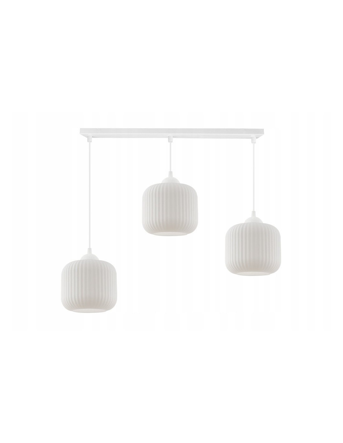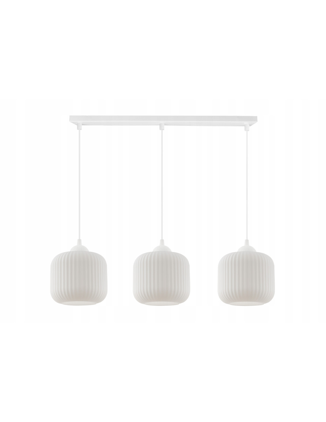 Subtelna biała lampa trzy wiszące walcowate klosze RIFFLE to idealne rozwiązanie dla osób, które cenią sobie elegancję i nowoczesny design. Jej minimalistyczna konstrukcja w kształcie walca z białymi kloszami ze szkła doskonale wpisuje się w trendy skandynawskie, nadając wnętrzu lekkości i świeżości. Lampa ta z powodzeniem wzbogaci estetykę każdego pomieszczenia, od salonu, przez jadalnię, aż po biuro.