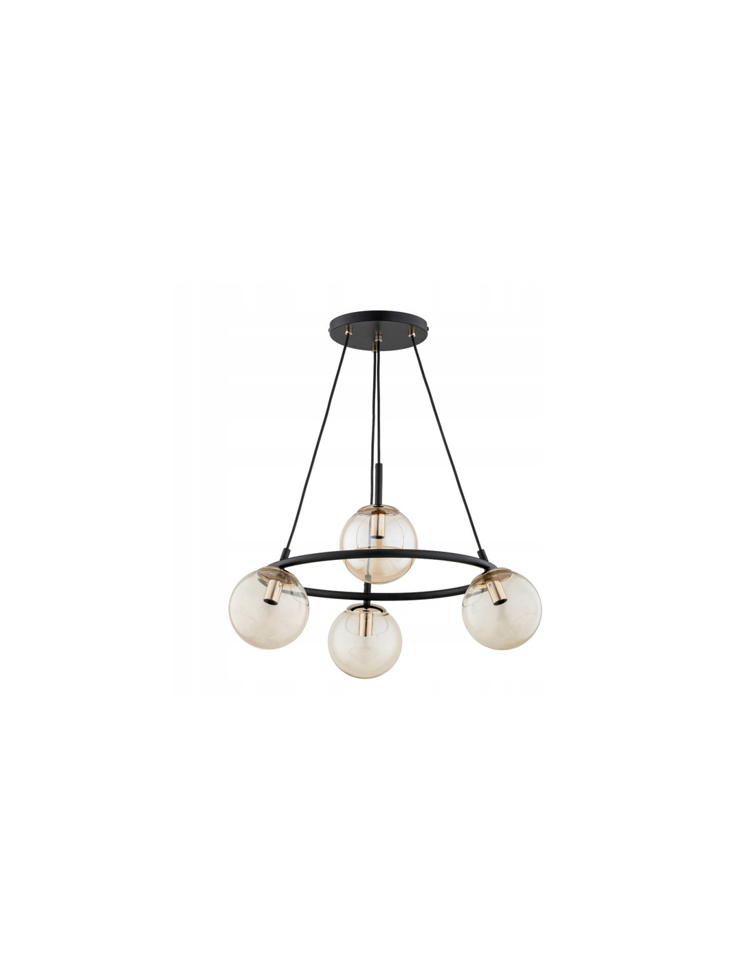 Oferujemy nowoczesną lampę wiszącą RINGO T4, która stanowi doskonałe połączenie elegancji i funkcjonalności. Metalowy stelaż lampy w kolorze czarnym, wykończony złotymi akcentami, nadaje jej niezwykłego charakteru. Dzięki transparentnym kloszom w złotym odcieniu, lampa staje się efektownym elementem wystroju, idealnym do współczesnych oraz klasycznych wnętrz.