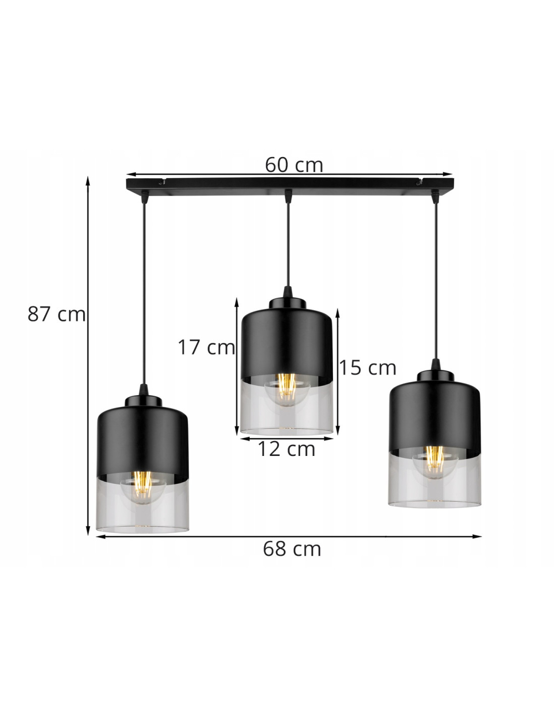 - Moc światła: 3 x 60W