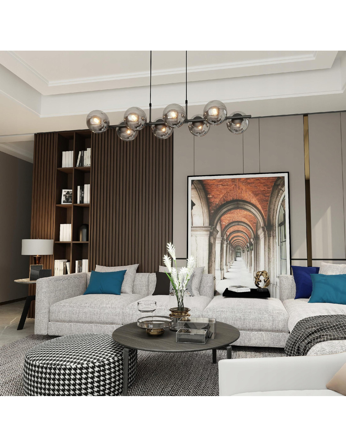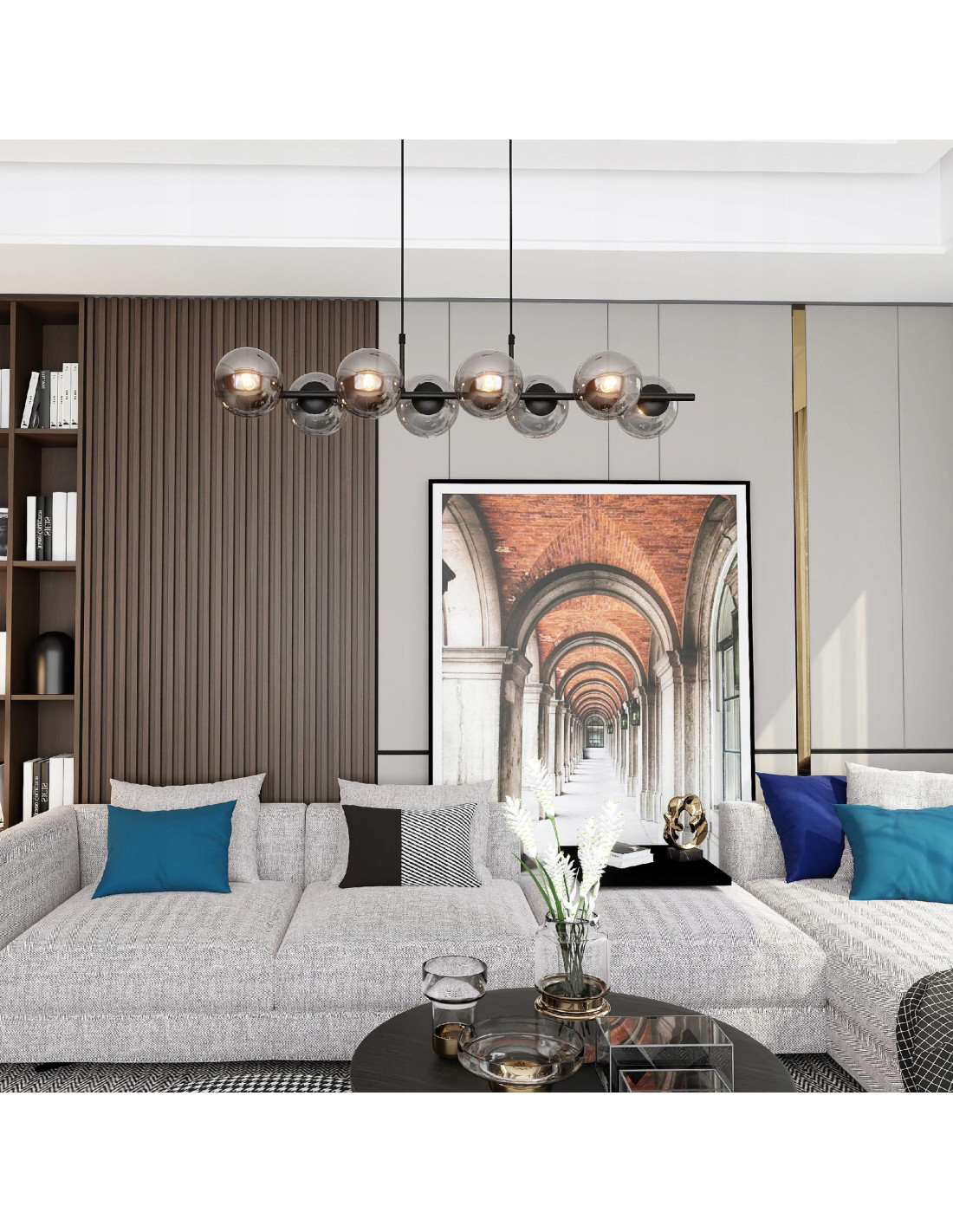 Lampa wisząca RORY to eleganckie i nowoczesne rozwiązanie oświetleniowe, które idealnie wpisuje się w każde wnętrze. Dzięki przydymionym szklanym kloszom oraz unikalnemu designowi, staje się ona nie tylko źródłem światła, ale także efektownym elementem dekoracyjnym. Doskonale pasuje zarówno do nowoczesnych, jak i klasycznych aranżacji.