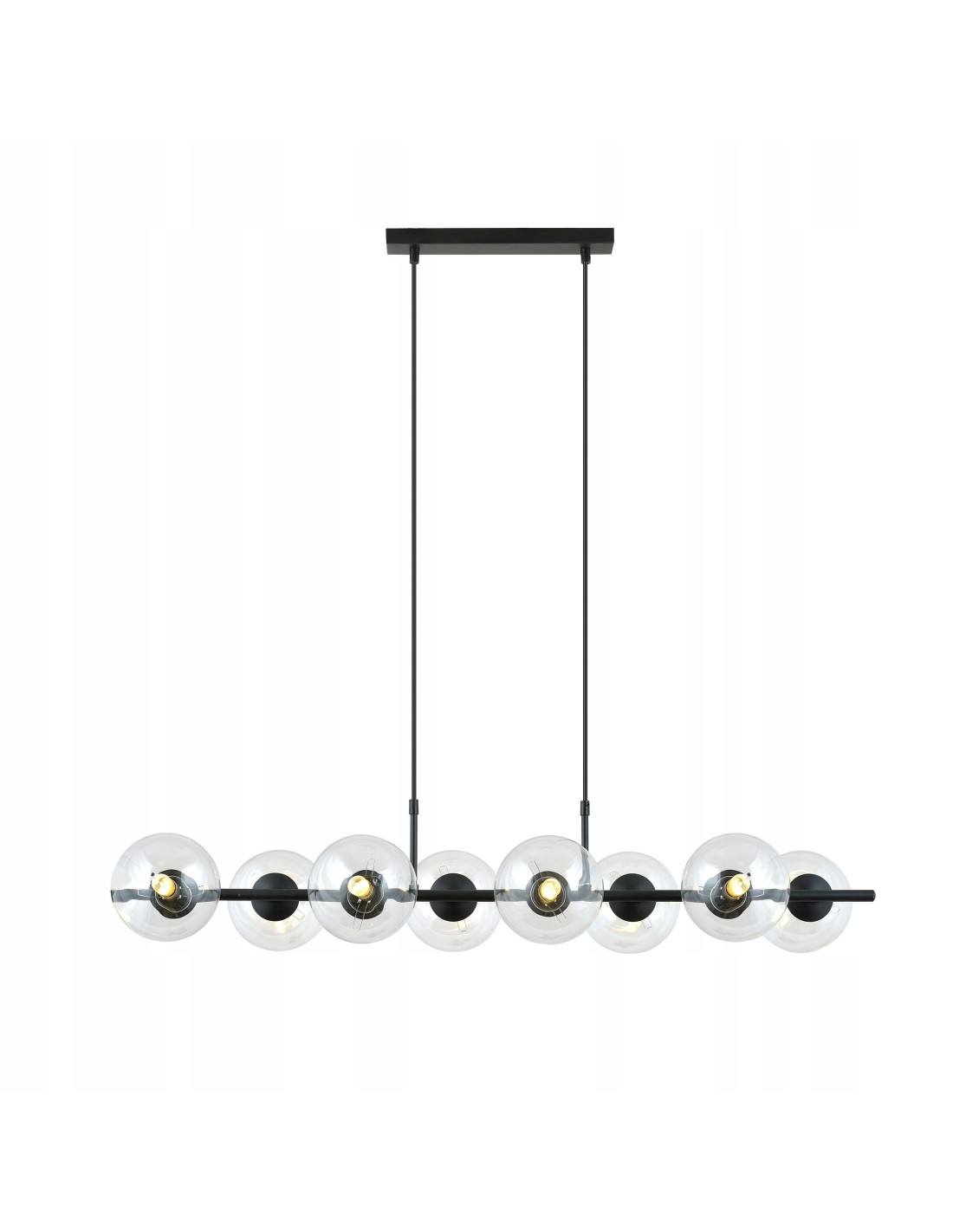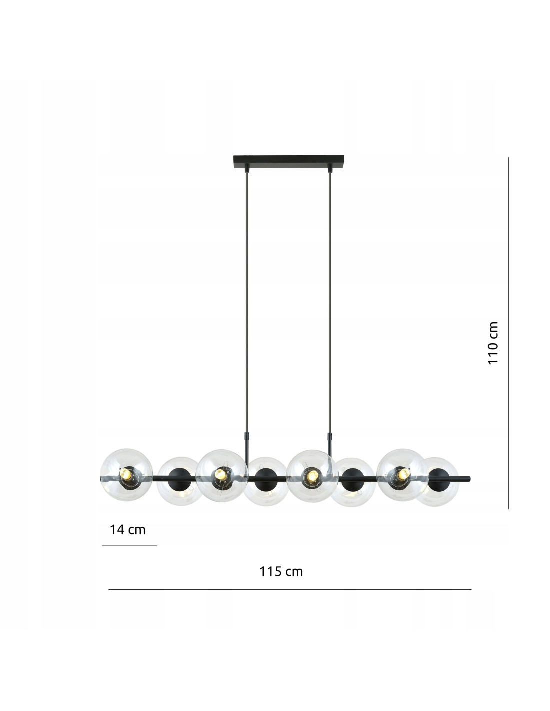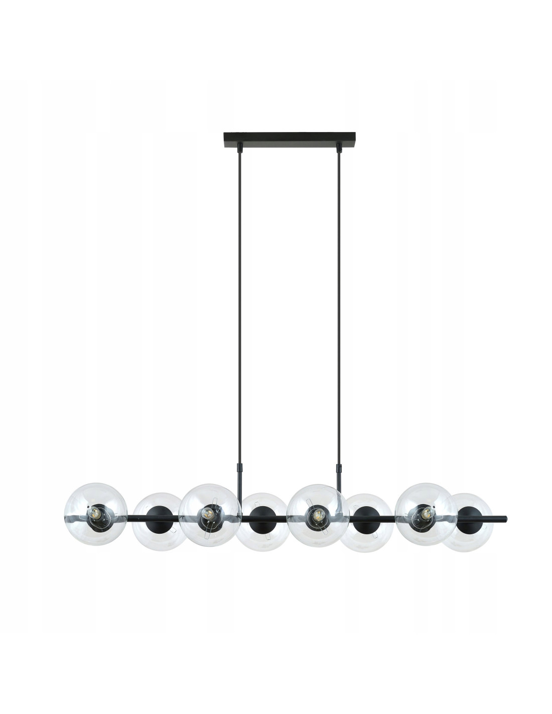 Lampa wykonana jest z metalowej konstrukcji w czarnym odcieniu, a przezroczyste klosze dodają całości lekkości i przestronności. Taki dobór kolorów sprawia, że lampa RORY wpisuje się w najnowocześniejsze trendy wnętrzarskie i doskonale komponuje się z różnorodnymi elementami dekoracyjnymi. Jeżeli cenisz sobie minimalizm oraz estetykę, z pewnością pokochasz tę lampę.