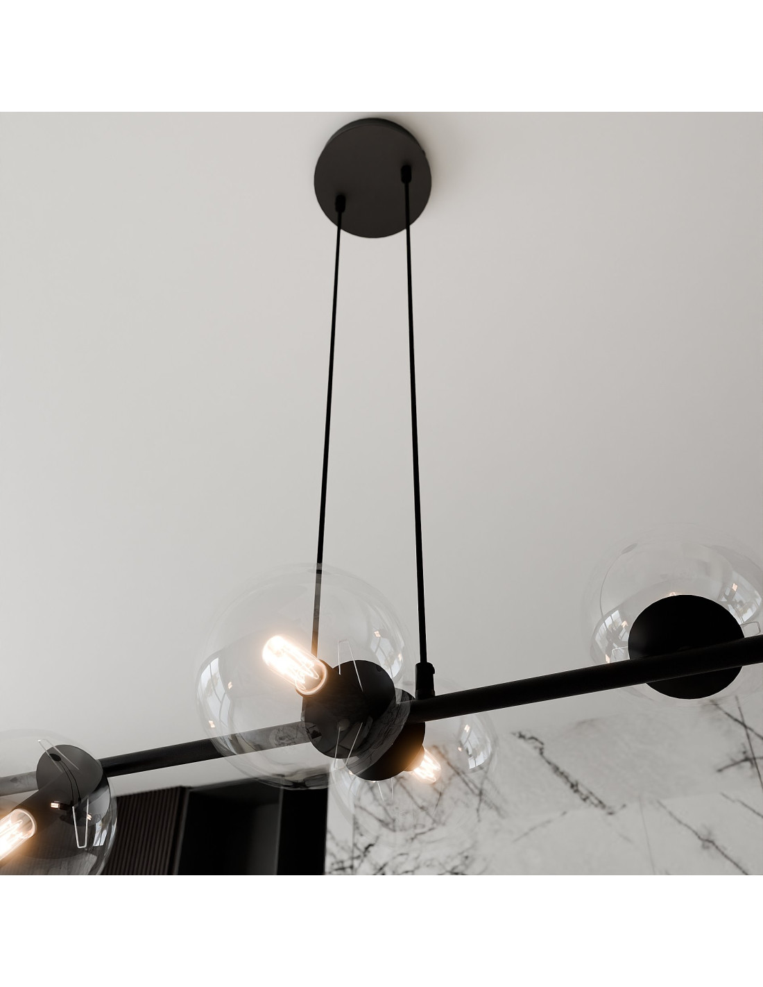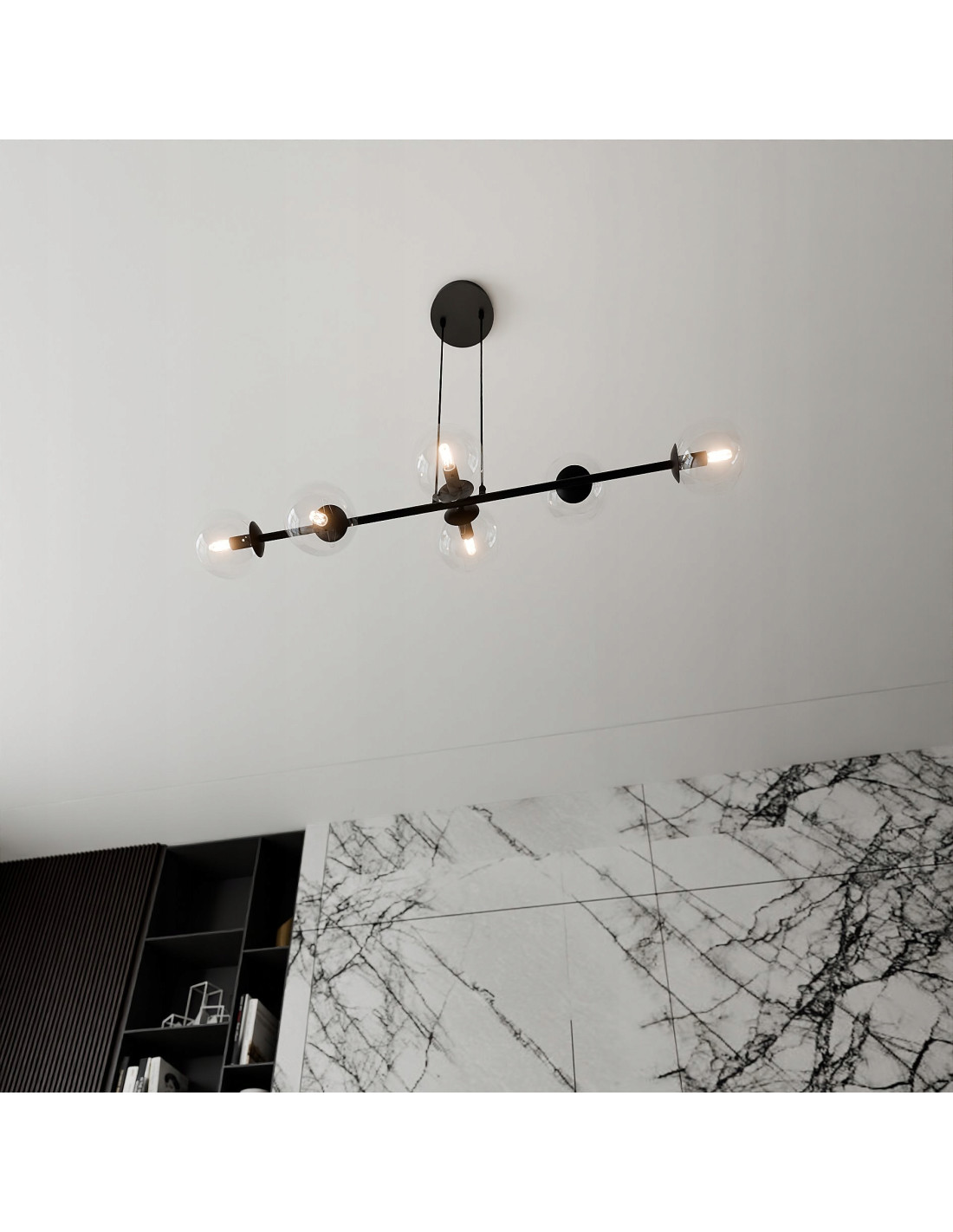 Odkryj dekoracyjną lampę wiszącą ROSSI 6 BL, która łączy w sobie nowoczesny styl z ponadczasową elegancją. Ta lampa to idealne rozwiązanie do każdego wnętrza, tworząc przytulną atmosferę zarówno w salonie, jak i w innych pomieszczeniach, takich jak jadalnia, kuchnia, biuro czy sypialnia.