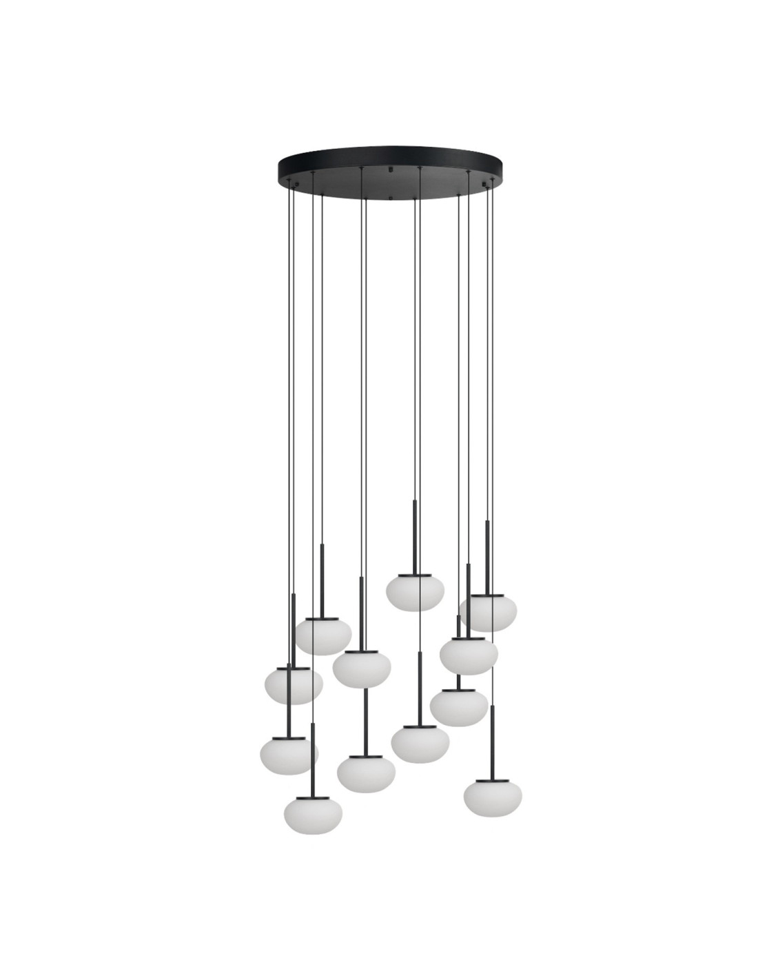 Oprócz funkcji oświetleniowej, lampa ta jest również wyjątkowym elementem dekoracyjnym. Jej Czarny matowy wykończenie w połączeniu z białymi klosikami tworzy efektowną i nowoczesną kompozycję, która przyciąga wzrok i sprawia, że każdy kąt staje się bardziej stylowy i wyrazisty.