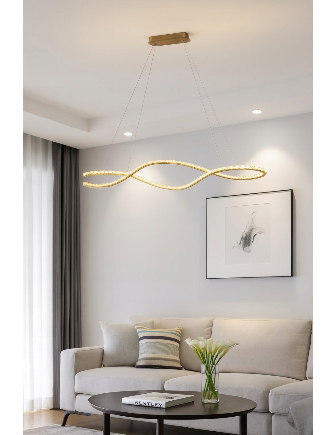 Długa lampa nad stół do salonu SPARK WAVES to doskonały wybór dla osób pragnących wprowadzić do swojego wnętrza element luksusu i elegancji. Jej chromowe wykończenie w połączeniu z kryształowymi elementami tworzy efektowną grę świateł, efektownie rozpraszając blask i nadając przestrzeni wyjątkowego charakteru.