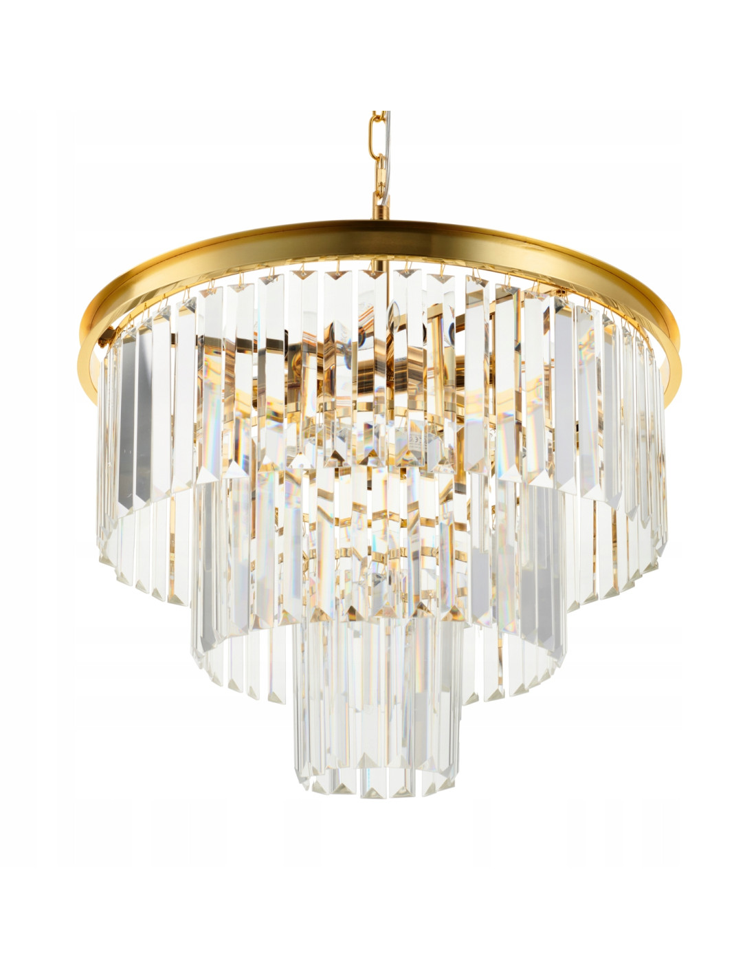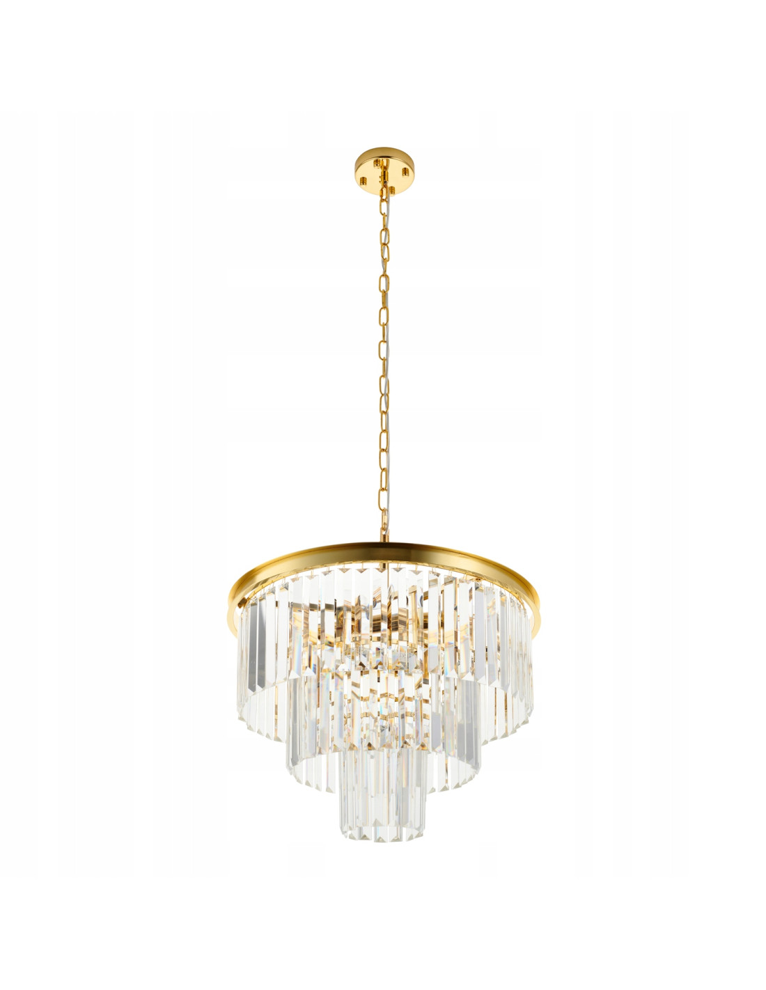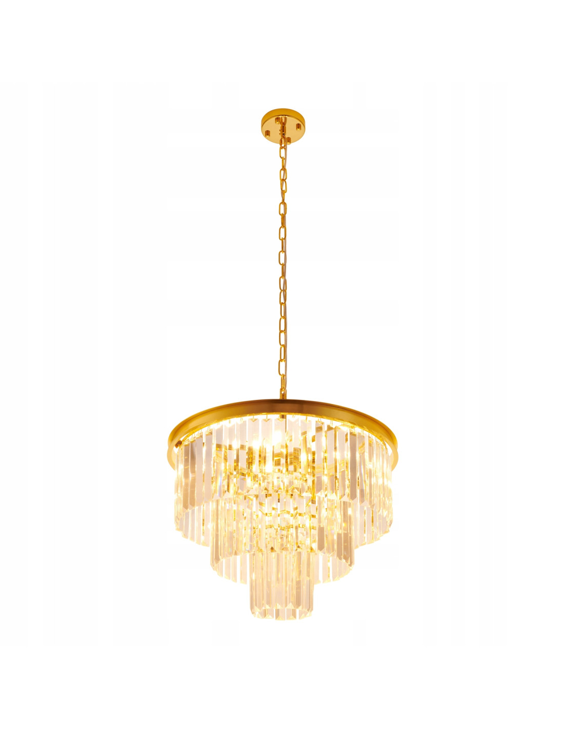 Dzięki okrągłej, trójwarstwowej konstrukcji o średnicy 50 cm, lampa wytwarza wspaniałą grę światła, która nadaje wyjątkowego charakteru każdemu wnętrzu. Kaskada kryształów załamuje światło w niezwykle efektowny sposób, tworząc niezapomniane wrażenia wizualne. Idealnie komponuje się zarówno w nowoczesnych, jak i klasycznych aranżacjach, dzięki czemu jest niezwykle uniwersalnym wyborem.
