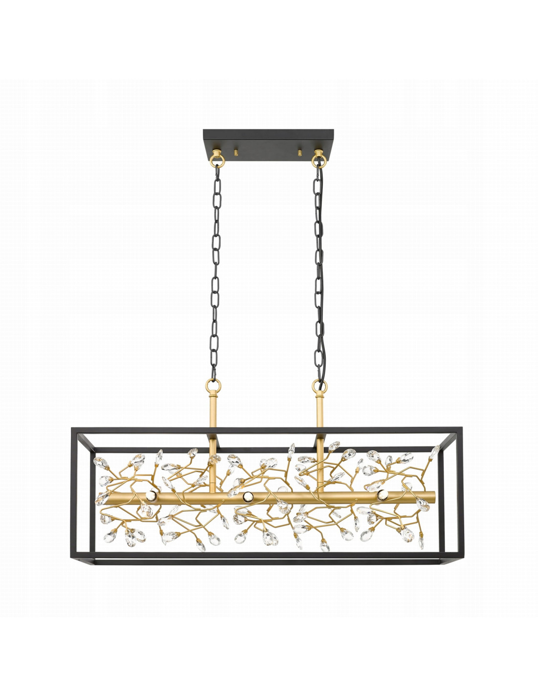 Przygotowana z wysokiej jakości materiałów, lampa łączy w sobie elementy czarnego matu oraz złotych akcentów, co skutkuje eleganckim wykończeniem. Dodatkowo, subtelne kryształy zastosowane w projekcie nadają jej wyjątkowego blasku, tworząc niepowtarzalną atmosferę w każdym pomieszczeniu. Idealnie pasuje do eleganckich, minimalistycznych aranżacji, dzięki czemu stanie się prawdziwą ozdobą każdego wnętrza.