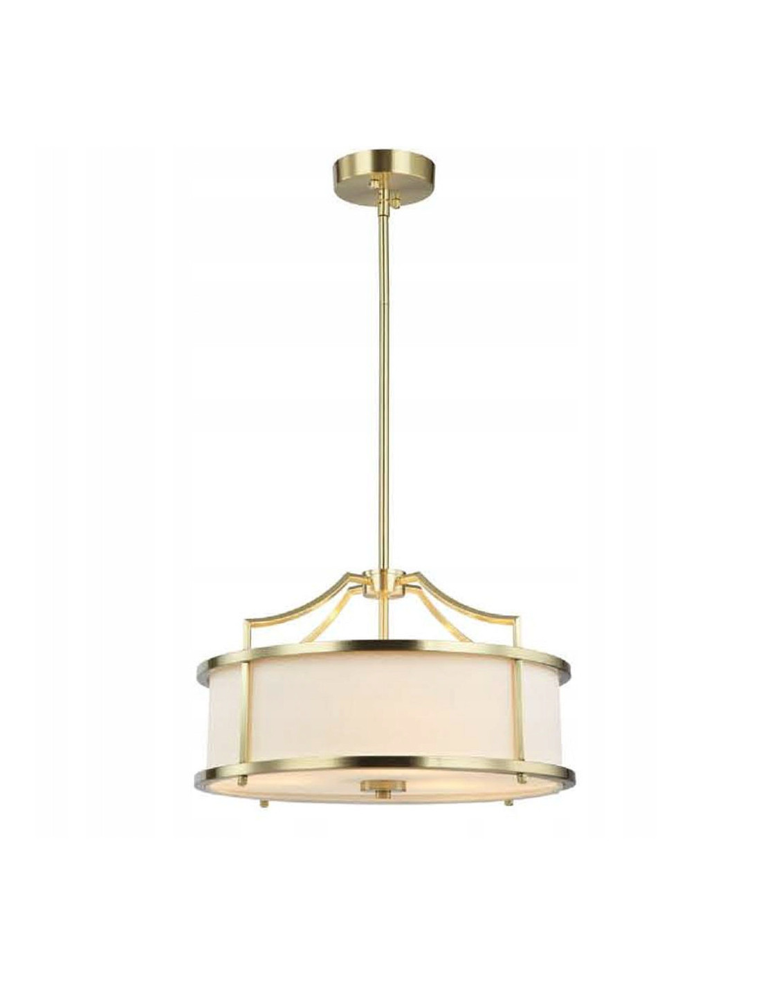 Wyjątkowa złota konstrukcja lampy, wykonana z metalu w odcieniu satynowego złota, nadaje jej prestiżowego wyglądu. Dodatkowo, jasny, materiałowy klosz, w białym kremowym kolorze, sprawia, że światło rozchodzi się w sposób delikatny i równomierny, co tworzy przyjemną atmosferę w każdym pomieszczeniu.