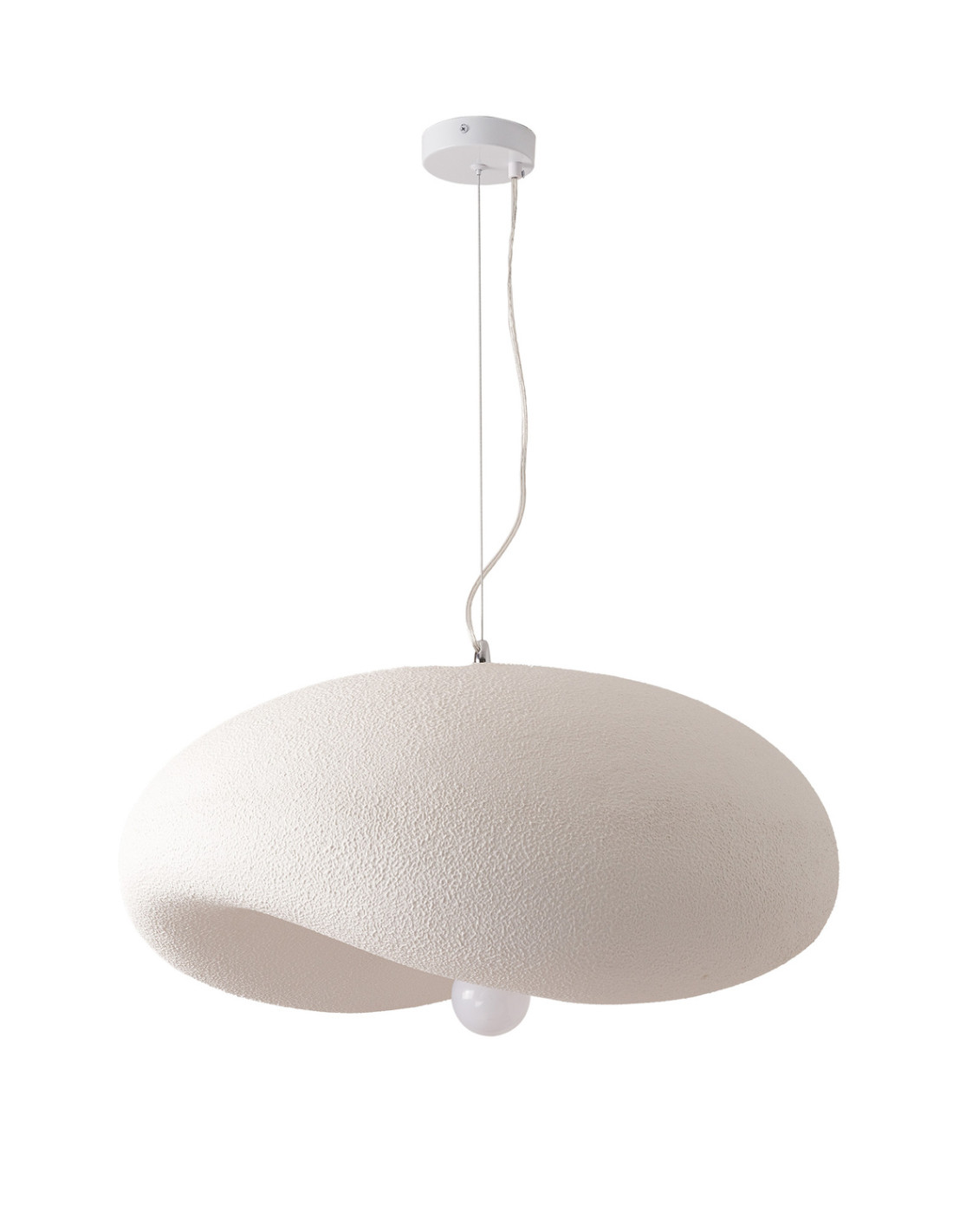 Dzięki niesymetrycznemu kloszowi, lampa staje się centralnym punktem każdego pomieszczenia, a jej ciepły biały odcień sprawdzi się w różnych aranżacjach. Zawieszona na białym przewodzie o długości 200 cm daje dużą swobodę w montażu, co sprawia, że idealnie wkomponuje się w zarówno nowoczesne, minimalistyczne, jak i skandynawskie czy rustykalne wnętrza.