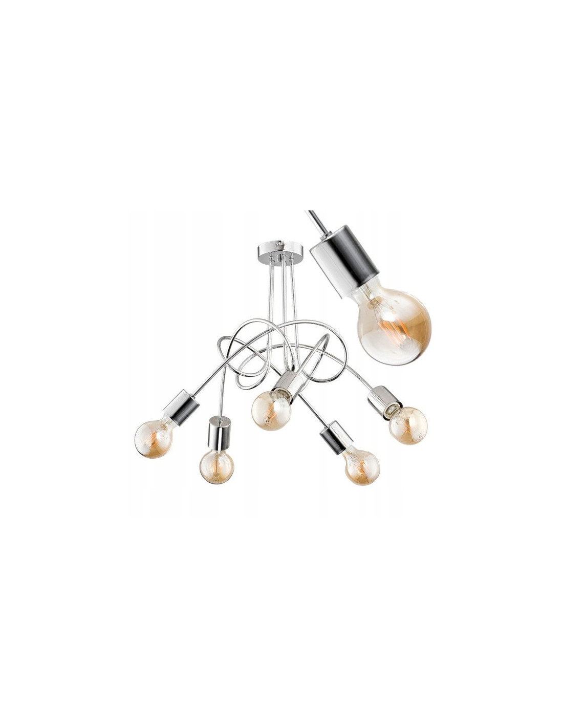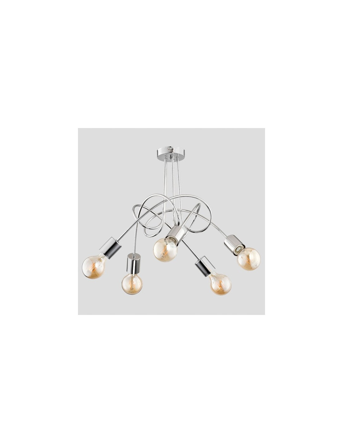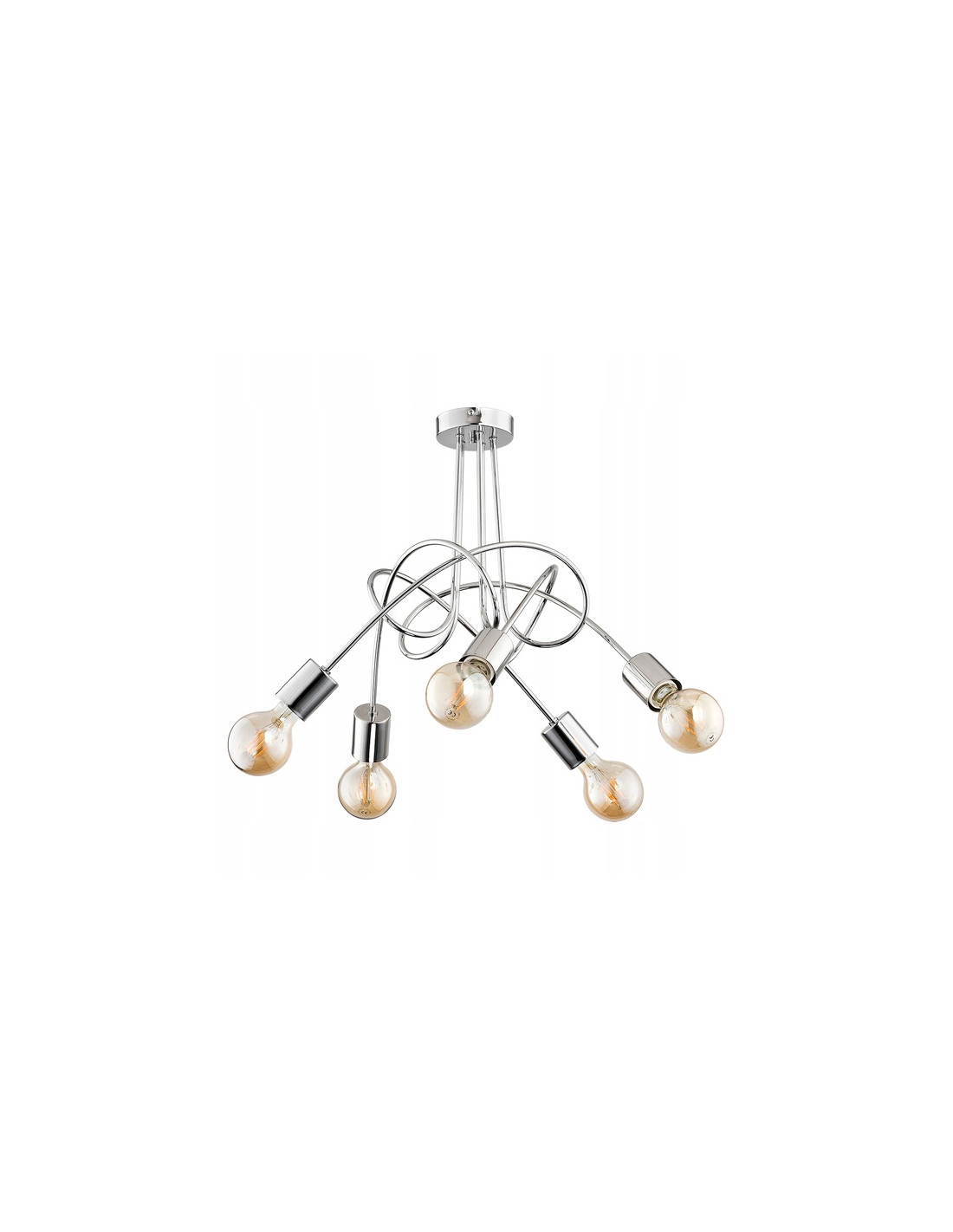 W żyrandolu TANGO CHROME zastosowano oprawę na pięć źródeł światła E27, co umożliwia indywidualny wybór żarówek o odpowiedniej mocy, aż do 60W na każdą z nich. Oto kluczowe parametry produktu: