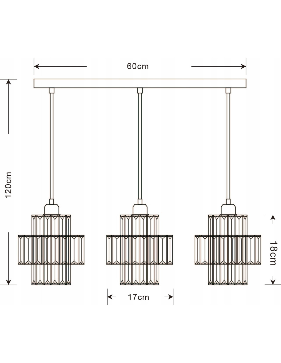 Wysokość maksymalna lampy wynosi 120 cm, a jej szerokość to 60 cm. Z głębokością wynoszącą 17 cm, lampa Targa jest idealnie skonstruowana, aby nie zajmować zbyt dużo miejsca, a jednocześnie zapewniać trójpunktowe źródło światła za pomocą żarówek o gwincie E27 (żarówki nie są dołączone do zestawu). Dzięki kątowi świecenia równemu 360 stopni, lampa doskonale oświetla każde zakamarek pomieszczeń.