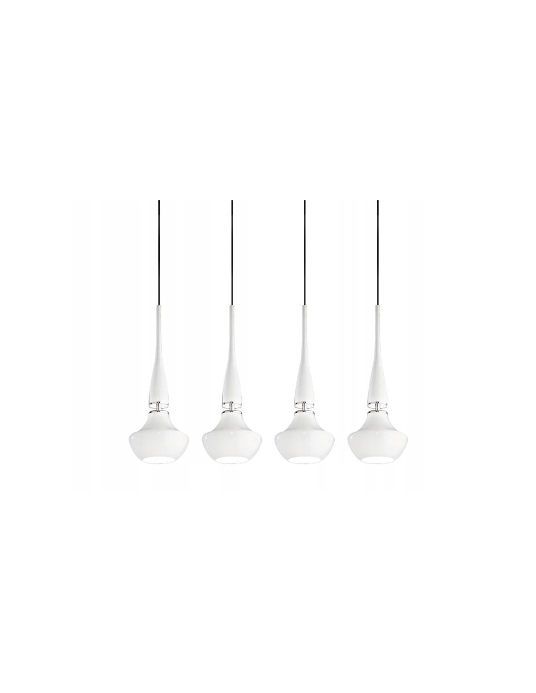 Produkt ten charakteryzuje się czterema punktami świetlnymi, co zapewnia efektywne oświetlenie przestrzeni. Dzięki zastosowaniu gwintu E14, można dowolnie dostosować rodzaj używanego źródła światła, co pozwala na dużą swobodę w wyborze odpowiednich żarówek. Wysokość lampy wynosząca 120 cm oraz szerokość 80 cm sprawiają, że idealnie nadaje się do montażu nad wyspą kuchenną lub stołem jadalnym, tworząc przytulną atmosferę podczas posiłków z bliskimi.