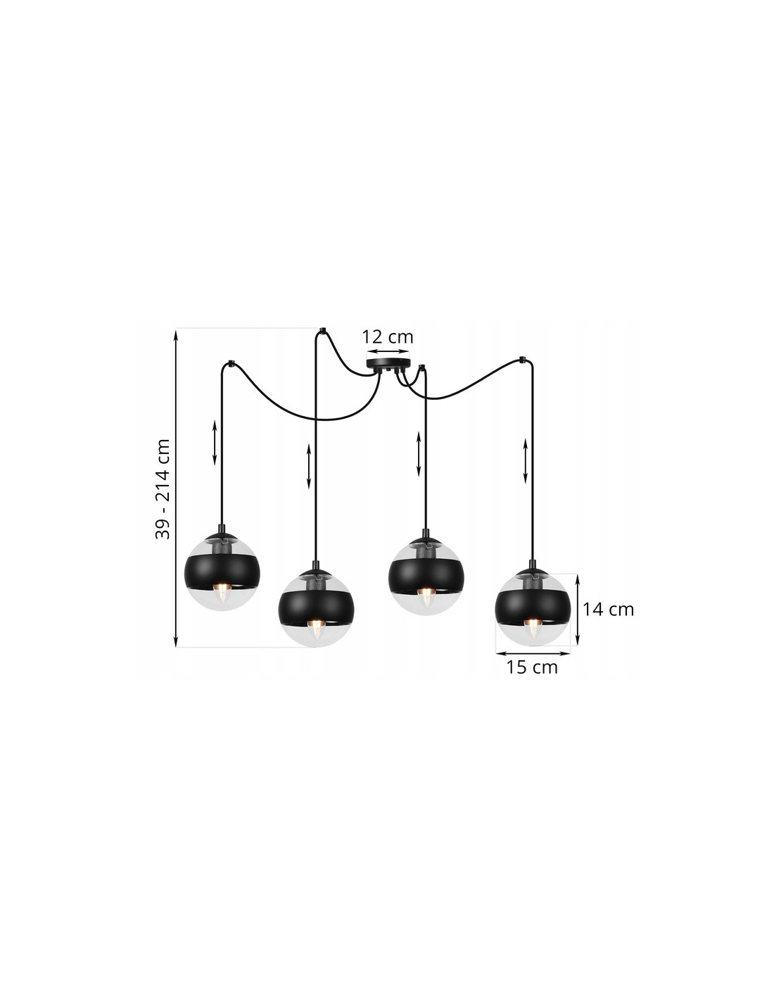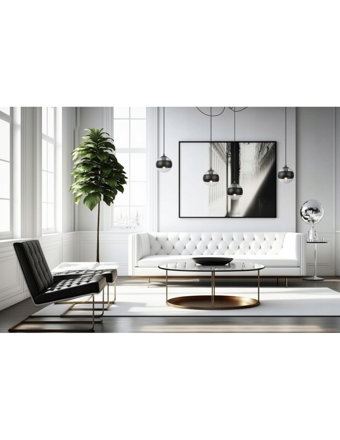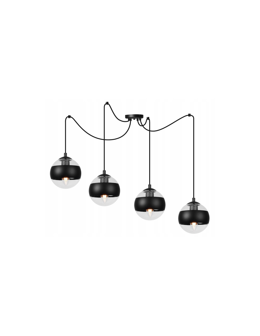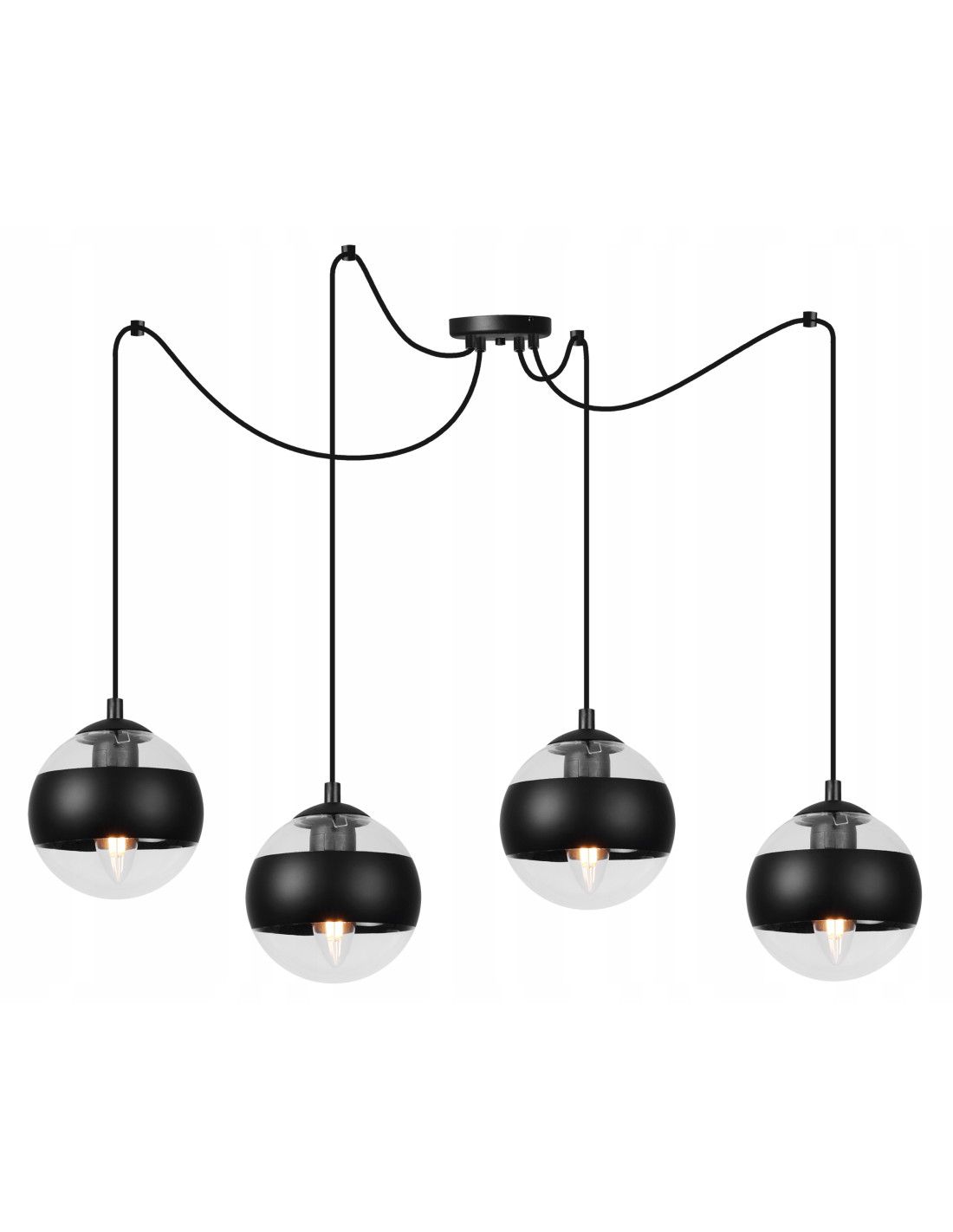 Odkryj nowoczesną lampę wiszącą w stylu industrialnym, która doskonale wpasuje się w każdy loftowy wnętrz. Model Pająk TOLEDO wyróżnia się kulistym kloszem wykonanym z przezroczystego szkła, ozdobionym eleganckim, czarnym matowym paskiem. Ta lampa stanie się nie tylko źródłem światła, ale także przyciągającą wzrok dekoracją w Twoim domu.