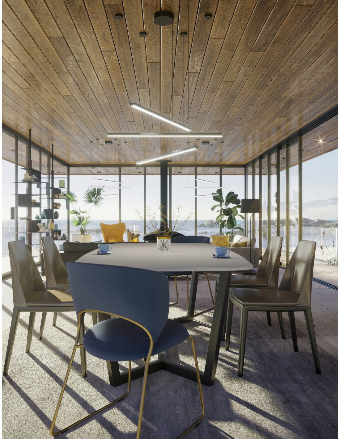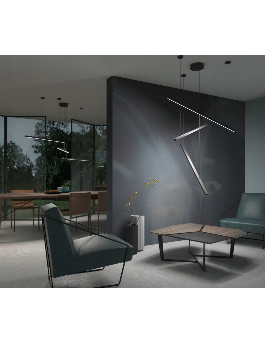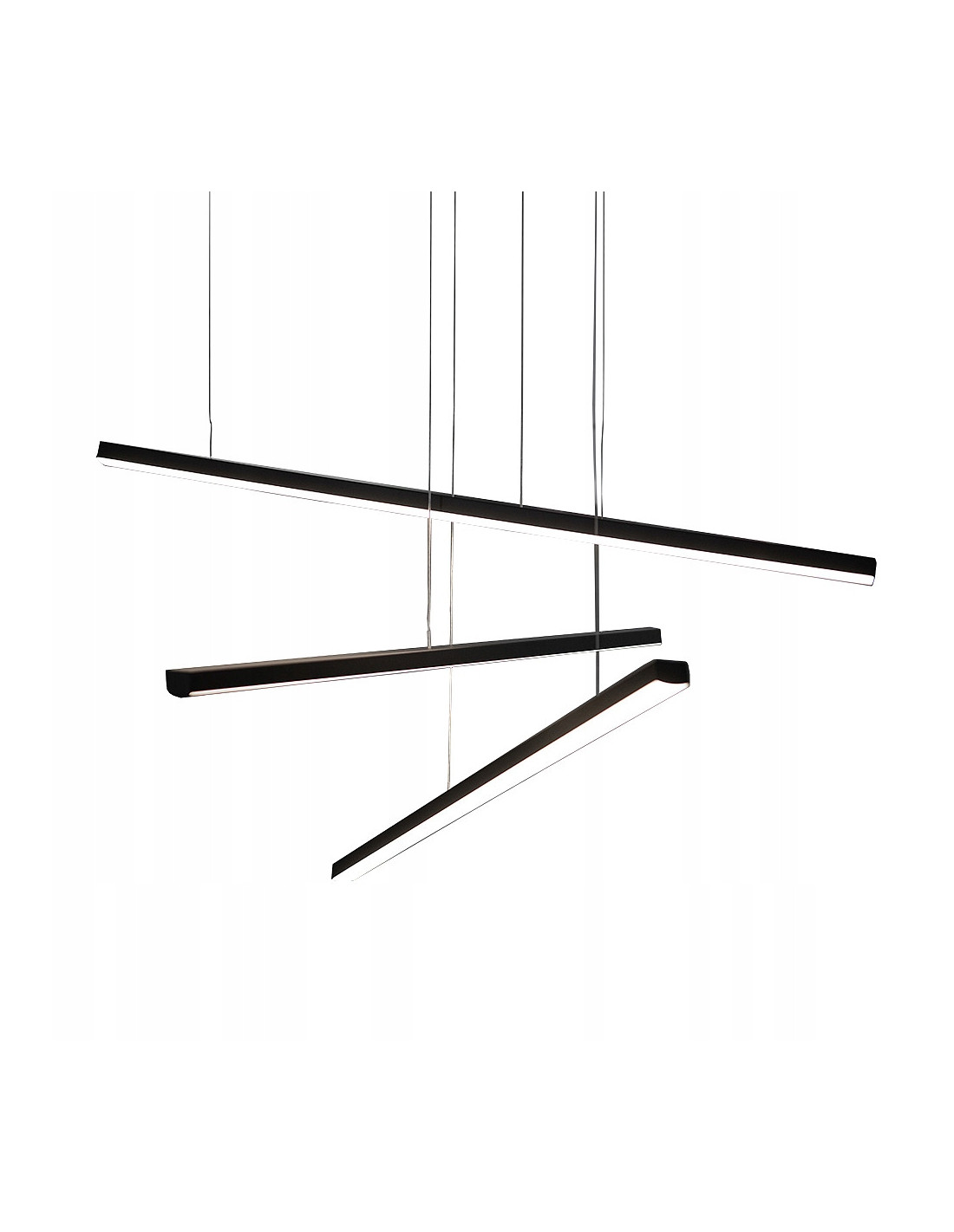 Oprawa Trio składa się z trzech świetlnych paneli o harmonijnych proporcjach, które tworzą nowoczesny i elegancki wygląd. Każdy panel wykonany jest z mlecznego szkła akrylowego, co zapewnia delikatne rozproszenie światła, a jednocześnie dobrze wpisuje się w metalową ramę. Możliwość regulacji długości linek umożliwia stworzenie zarówno prostych, równoległych linii, jak i bardziej dynamicznych kompozycji, zależnie od Twoich upodobań.