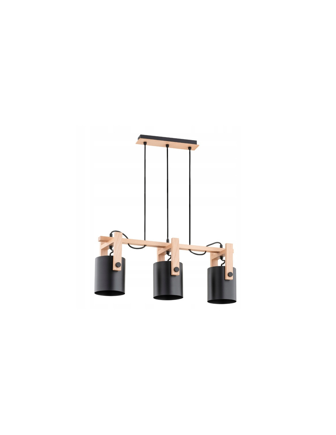 Odkryj nowoczesną lampę wiszącą TROIS, która łączy w sobie unikalny design oraz funkcjonalność. Ta lampa w kolorze czarnym z naturalnymi akcentami drewnianymi to idealny dodatek do każdego salonu czy kuchni, który nadaje wnętrzu przytulnego charakteru. Dzięki połączeniu stalowych kloszy przypominających reflektory z drewnianym stelażem, TROIS staje się wyjątkową dekoracją w stylu retro.