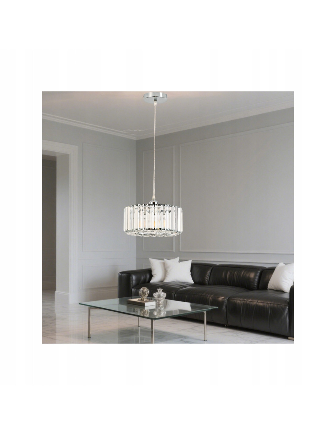 Tortowa lampa wisząca chromowa kryształowa Vetro to idealne rozwiązanie dla osób, które chcą dodać elegancji i wyrafinowania do swojego wnętrza. Zaprojektowana z myślą o stylu glamour, lampa łączy w sobie metalową konstrukcję w kolorze srebrnym z transparentnym szkłem, co nadaje jej niezwykłej lekkości i nowoczesności. To doskonała propozycja do dekoracji kuchni, jadalni, salonu czy biura.
