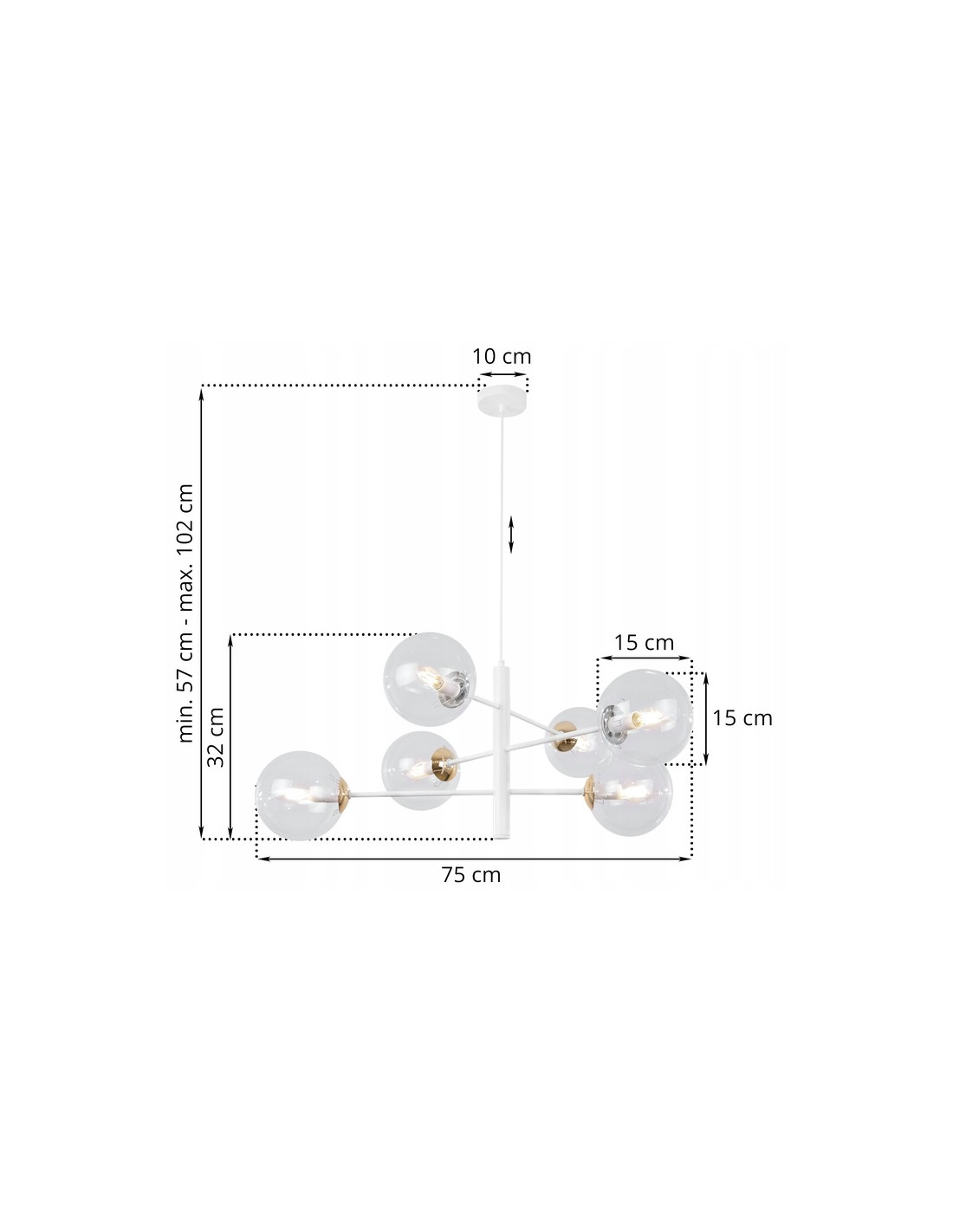 Przedstawiamy reprezentacyjną lampę biało-złotą z 6 kloszami na długich ramionach VICENZA, która doskonale łączy w sobie funkcjonalność i estetykę. Ta wyjątkowa lampa będzie eleganckim akcentem w każdym wnętrzu, dodając mu wyrafinowanego stylu oraz nowoczesnego charakteru.