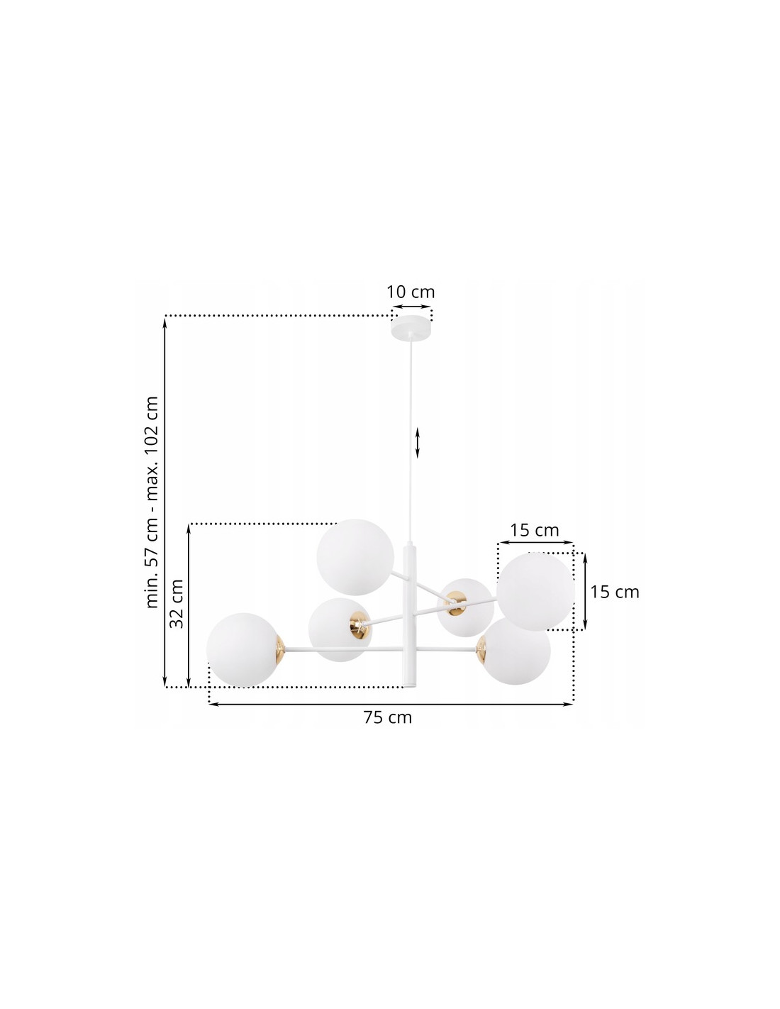 Wymiary lampy są starannie przemyślane, aby zapewnić idealne oświetlenie w każdym pomieszczeniu. Z wysokością od 57 cm do 102 cm oraz szerokością 75 cm, VICENZA jest odpowiednia zarówno do przestronnych salonów, jak i eleganckich jadalni czy biur.