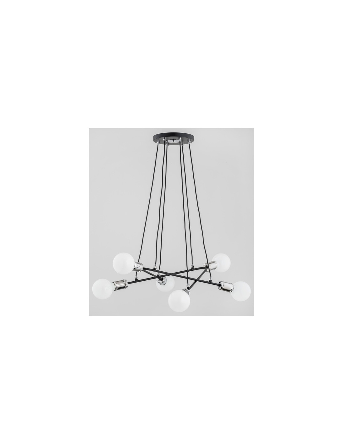 Lampa jest w stanie pomieścić aż sześć żarówek E27, co gwarantuje intensywne i równomierne oświetlenie całej przestrzeni. Dzięki temu możesz efektywnie dostosować moc źródeł światła do swoich potrzeb. Z uwagi na to, że żarówki nie są osłonięte, ich blask będzie w pełni widoczny, co stwarza wyjątkową atmosferę w każdym pomieszczeniu.