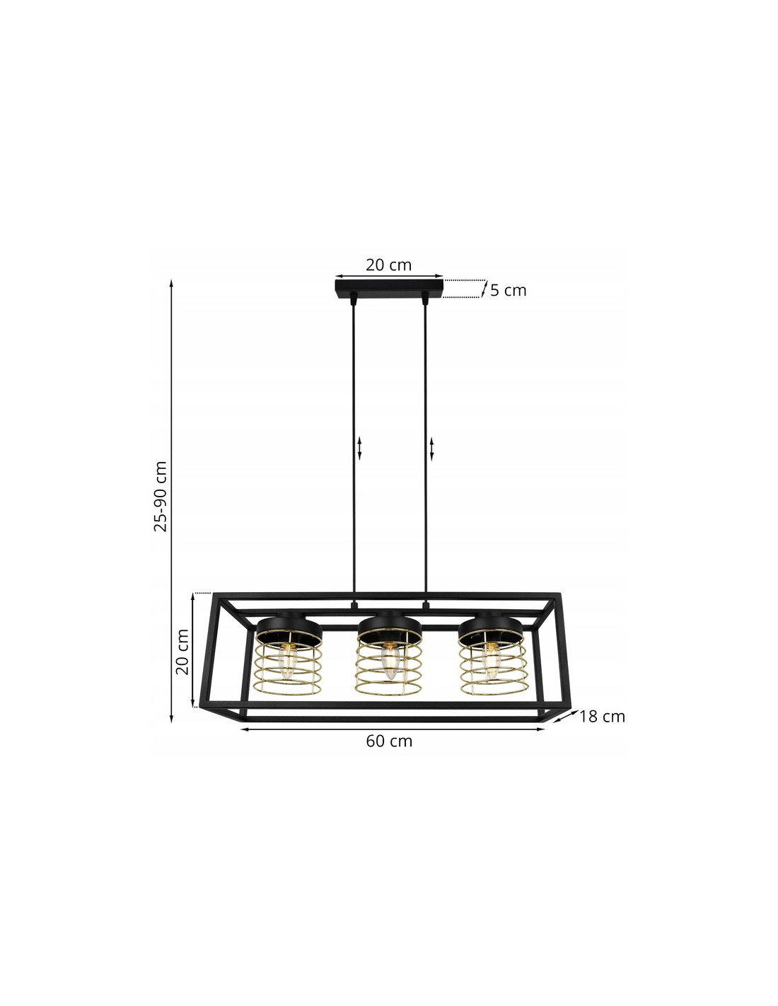 Lampa wisząca metalowa loft RASTI CAGE to unikalna propozycja dla osób ceniących sobie elegancję połączoną z surowym stylem przemysłowym. Jej czarna konstrukcja doskonale współgra z złotym kloszem, co nadaje jej wyjątkowy i nowoczesny wygląd. Wprowadzenie takiego elementu do wnętrza z pewnością zwróci uwagę gości, stając się centralnym punktem w każdym pomieszczeniu.