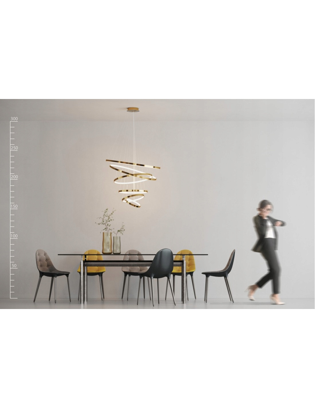 Lampa wisząca WHEEL 6 LONG DIMM to wyjątkowy element oświetleniowy, który odmieni wnętrze każdego stylowego pomieszczenia. Jej oryginalna trójwymiarowa forma składa się z sześciu okręgów w różnych rozmiarach, wzajemnie się przenikających, co nadaje jej niesamowity przestrzenny i rzeźbiarski charakter. Ta lampa wyróżnia się spośród tradycyjnych rozwiązań oświetleniowych, przyciągając wzrok i stając się centralnym punktem dekoracyjnym w salonie, jadalni czy sypialni.