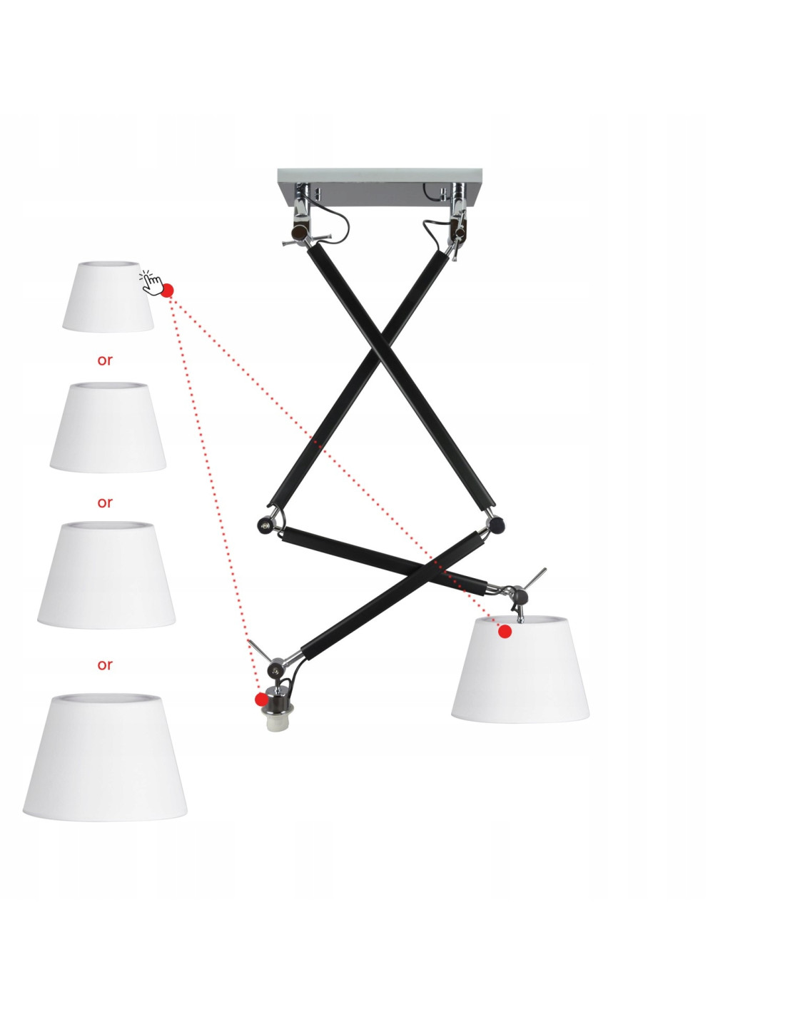 Wybór abażurów to kolejny atut tej lampy. Klienci mogą projektować swoje oświetlenie zgodnie z własnymi preferencjami, wybierając spośród kilku kolorów i rozmiarów kloszy. Do wyboru są: