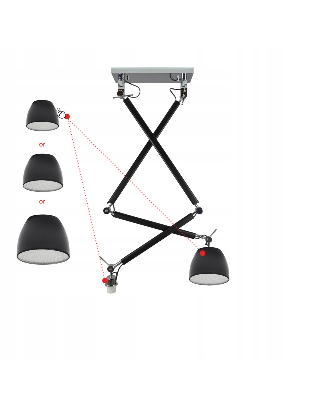 - Klosz aluminiowy w szarym lub czarnym kolorze: 18 cm, 23 cm, 33 cm