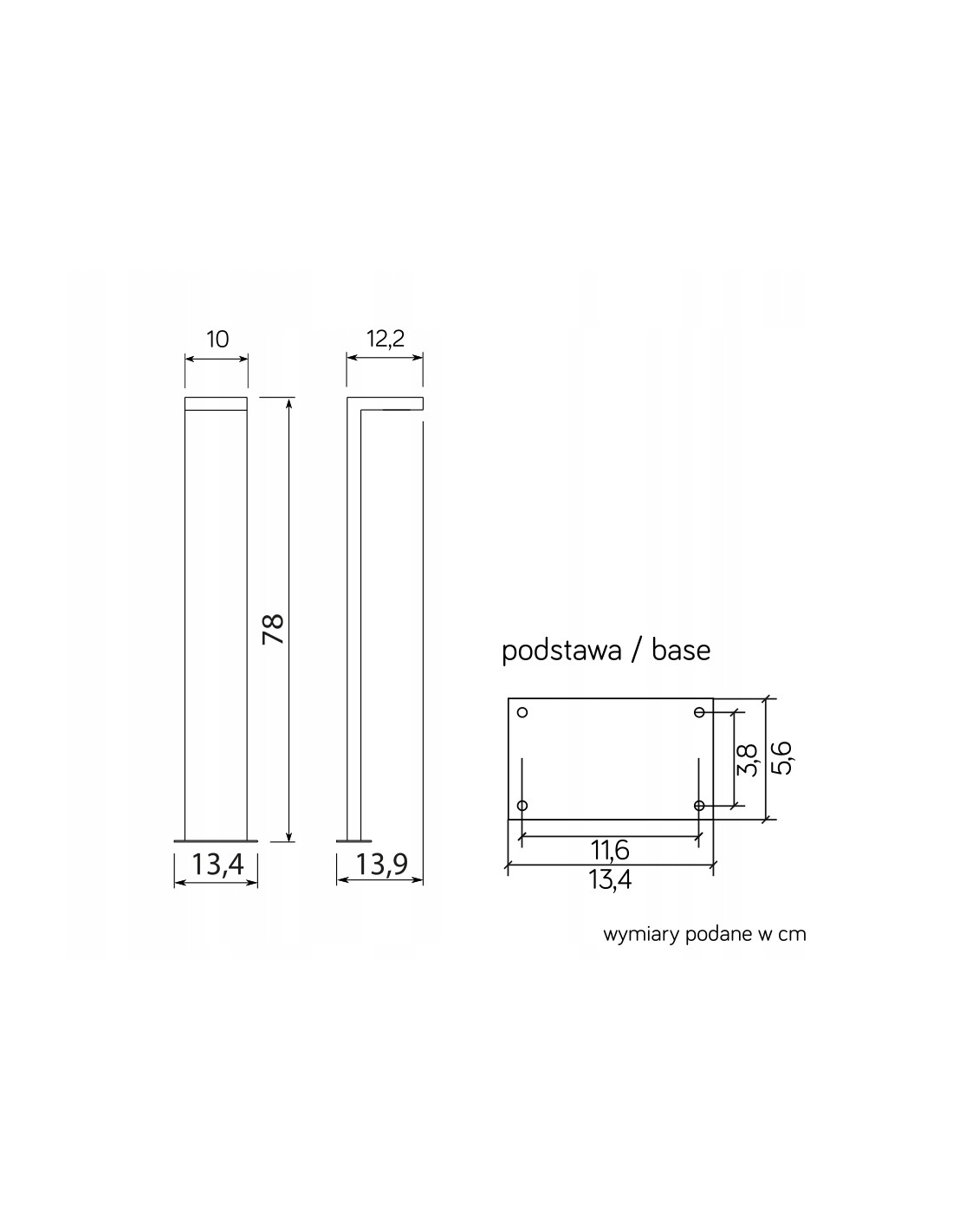 Wykonana z aluminium, lampa jest nie tylko odporna na warunki atmosferyczne, ale także trwała i estetyczna. Wyposażona w zintegrowane źródło światła LED, charakteryzuje się wysoką wydajnością energetyczną oraz długą żywotnością. Prostokątny kształt i biały klosz z poliwęglanu kierują światło w dół, równomiernie oświetlając przestrzeń wokół.