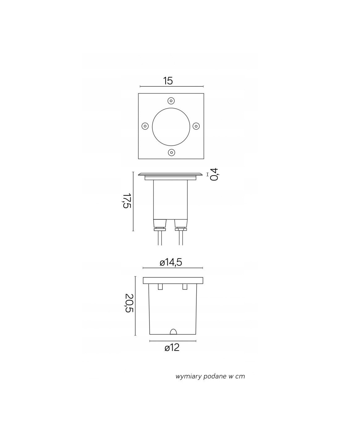 Lampa ma wymiary: wysokość 17,5 cm, szerokość 15 cm oraz głębokość 15 cm, co sprawia, że jest kompaktowa i łatwa do zamontowania w różnych przestrzeniach. Źródłem światła dla tego modelu jest standardowy gwint GU10, co pozwala na łatwe dobranie odpowiedniej żarówki o mocy do 50W (żarówka nie jest dołączona do zestawu).