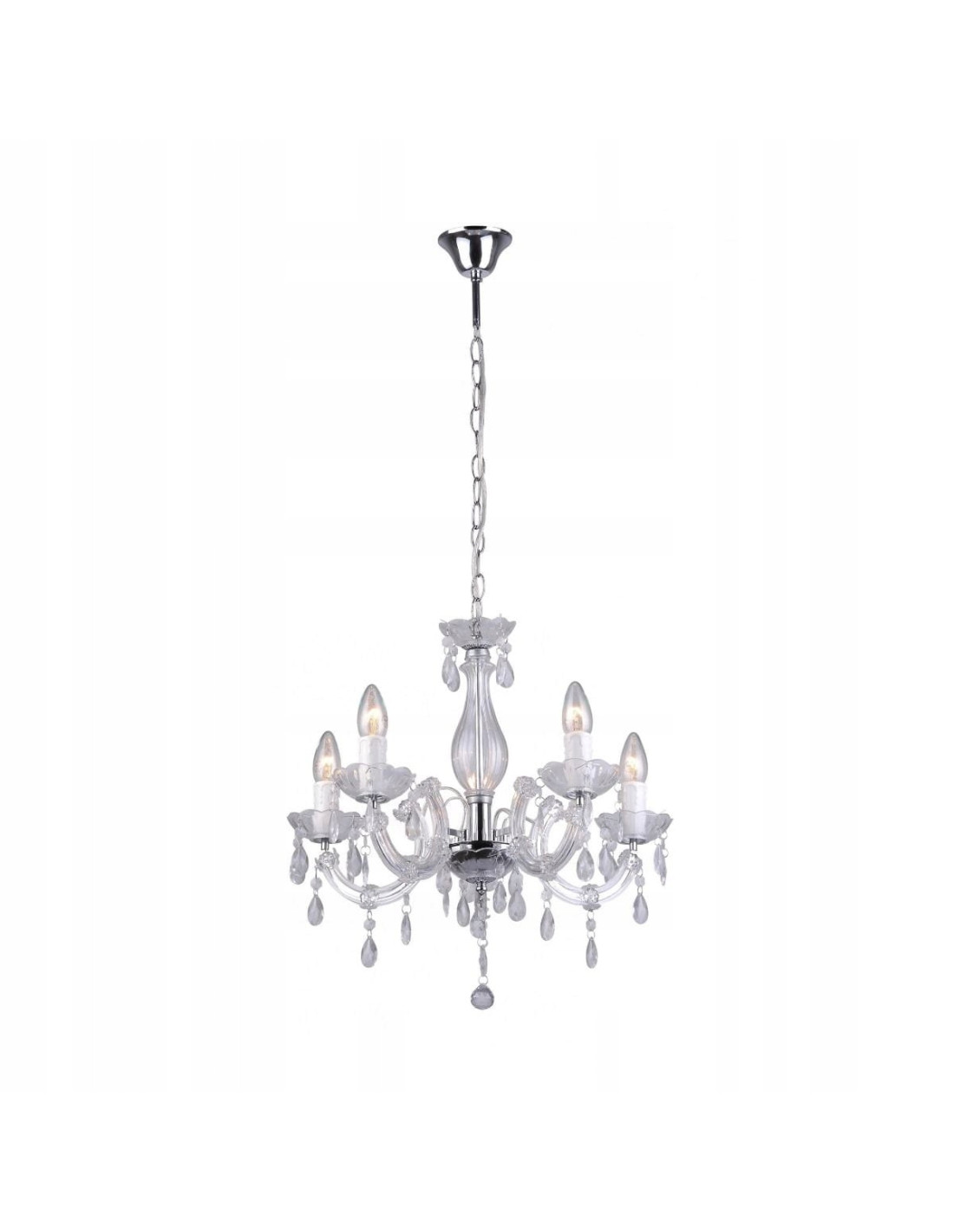 Pod względem technicznym, żyrandol obsługuje pięć żarówek typu E14 o maksymalnej mocy 40W każde, co pozwala na dostosowanie oświetlenia do indywidualnych potrzeb oraz preferencji. Ponadto, lampa jest przeznaczona do zasilania sieciowego, co dodatkowo podnosi jej funkcjonalność i wygodę użytkowania.