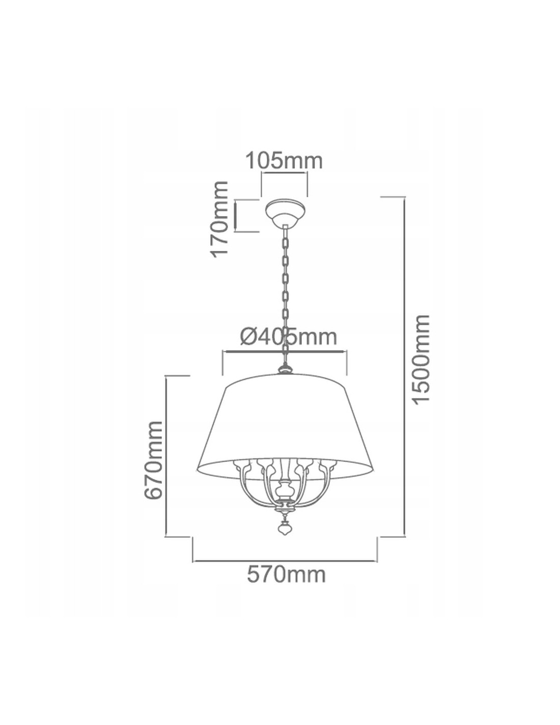 Wysoka jakość wykonania lampy zapewnia trwałość oraz zadowolenie z użytkowania przez długi czas. Wykorzystanie metalu w konstrukcji oraz eleganckiego klosza pozwala na łatwe dopasowanie do różnorodnych stylów aranżacyjnych. Wysokość żyrandola wynosi 150 cm, co sprawia, że idealnie doświetli każde pomieszczenie, a jego średnica klosza to 40.5 cm, co zapewnia optymalne rozproszenie światła.